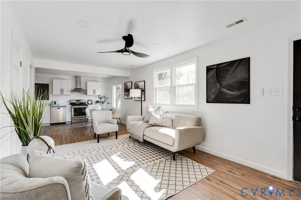 Experience effortless, low-maintenance living at 3104 Howard Street"”a beautifully renovated ranch-style home that perfectly blends style, comfort, and functionality in Richmond's East End. Step inside to discover an open-concept living and dining area filled with natural light, featuring new flooring, fresh paint, and thoughtful updates throughout. The kitchen is a true centerpiece, showcasing sleek white cabinetry, quartz countertops, stainless steel appliances, a stylish tile backsplash, and recessed lighting"”ideal for both everyday cooking and entertaining. The home offers three well-appointed bedrooms that share a completely renovated full bath with a state-of-the-art tiled shower and an attractive wood vanity. A convenient half bath adds extra functionality for guests. Outside, enjoy a large backyard perfect for pets, play, or hosting gatherings. Recent improvements provide peace of mind, including a brand-new roof, vinyl windows, siding, and HVAC system. Located just minutes from Downtown Richmond, Church Hill's vibrant restaurant scene, and local parks, this move-in ready home combines quality craftsmanship with the ease of single-level living and unbeatable city access. Don't miss your chance to make this beautifully refreshed home your own"”schedule your showing today!
