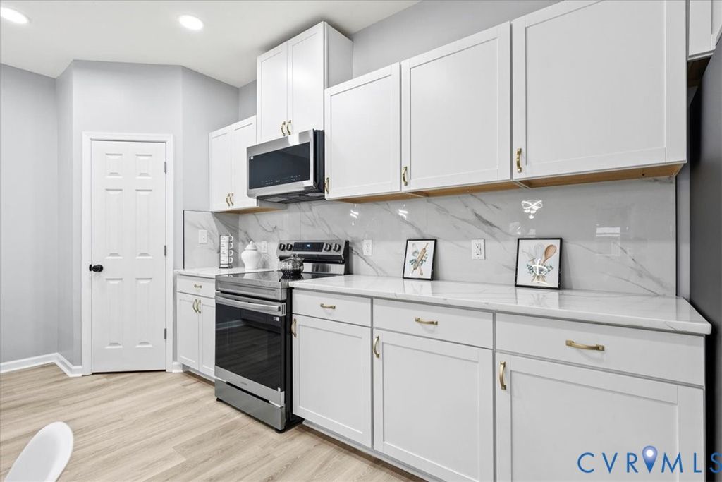 Welcome to this beautifully designed new construction offering 4 bedrooms and 3.5 bathrooms across approximately 2,116 sq. ft. of modern living space. Every detail in this home showcases quality craftsmanship and thoughtful design. The open-concept floor plan features luxury vinyl plank flooring, tray ceilings, and recessed lighting that enhance the home's contemporary feel. The chef's kitchen is equipped with sleek white shaker cabinets, quartz countertops, marble backsplash, and stainless-steel appliances, blending style and functionality. The first-floor primary suite offers comfort and convenience, while the upper-level bedrooms include spacious closets and elegant en-suite baths. Each bathroom is finished with modern gold fixtures and designer tilework, creating a spa-like atmosphere. Enjoy a covered front porch, paved driveway, and a fenced backyard perfect for relaxation or entertaining. Conveniently located near shops, restaurants, and major routes, this home combines modern design, comfort, and accessibility"”a perfect opportunity for homeowners or investors alike!