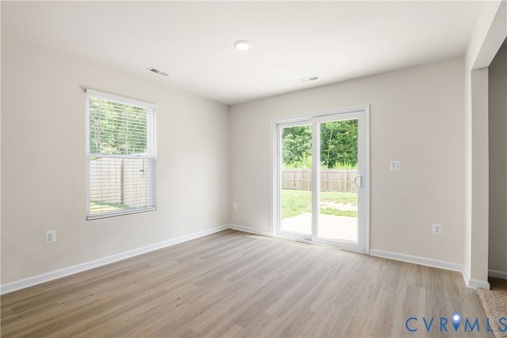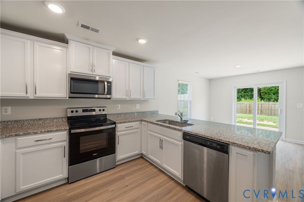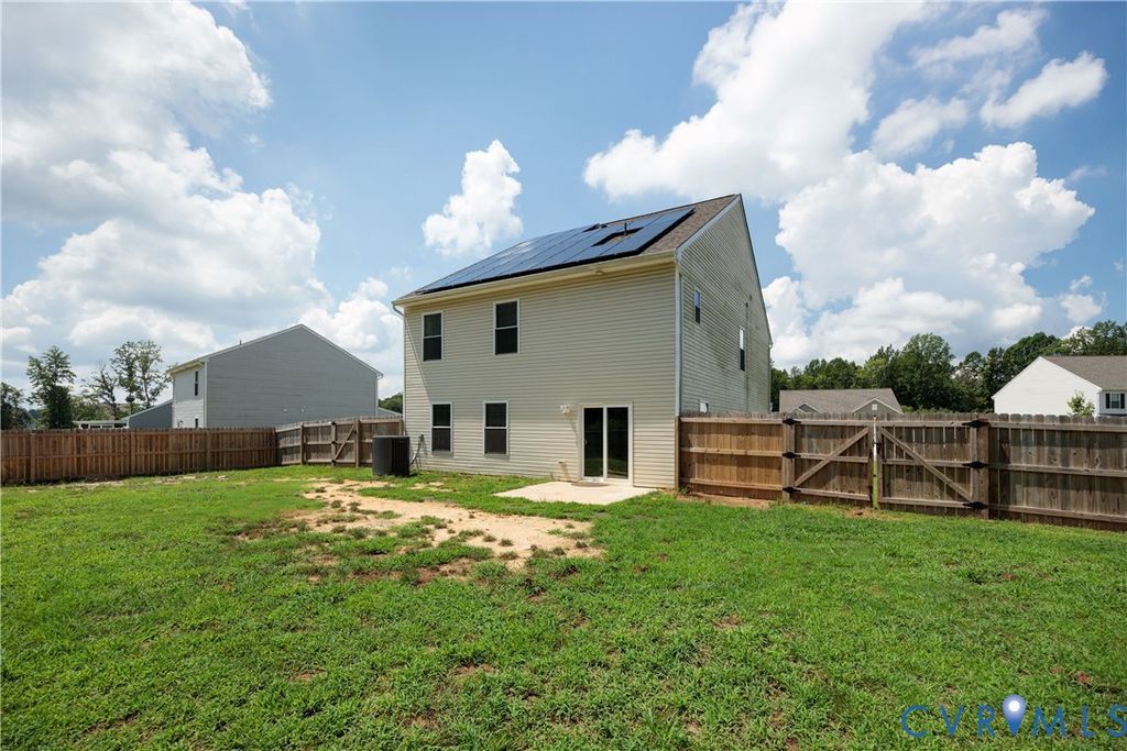 Welcome to this nearly new two-story home in The Meadows"”built just two years ago and offering modern comfort, style, and Solar Panels for exceptional energy efficiency. Step inside to a welcoming foyer that opens to a spacious living room and an open-concept kitchen with a large dining area. The living room offers abundant space and a double coat/storage closet. The kitchen features sleek white cabinetry, granite counters, stainless appliances, pantry, eat-at peninsula and a generous dining area with sliding glass doors to the patio and fenced backyard. A convenient powder room and garage access complete the main level. On the upper level, you will find a large landing area, four generously sized bedrooms, and two full bathrooms. The well-appointed primary suite features a cathedral ceiling, private bath with a large vanity and seating area, shower, and a spacious walk-in closet. Three additional bedrooms and a full bath provide plenty of room for family or guests. A dedicated laundry room with washer, dryer, and shelving completes the upper level. Outside, a covenient double-width concrete driveway leads to a direct-entry two-car garage, sidewalk to a covered front porch, and a fully privacy fenced backyard with a patio that is just outside of the dining area creating great indoor/outdoor space for family times and entertaining guests. This home is equipped with energy-efficient solar panels that dramatically reduce"”or even eliminate"”your electric bill. Best of all, the solar panels convey with the property, providing lasting savings and value for you in your new home in The Meadows where residents enjoy access to a common area with picnic pavilion, playground, and the neighborhood is perfect for walking and outdoor activities. Conveniently located near Fort Gregg-Adams, I-295 and I-95. Only two years old, this home offers the benefits of new construction without the wait, combining comfort, efficiency, and modern design in one package! Don't miss your opportunity to make this exceptional home your own!