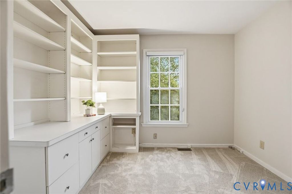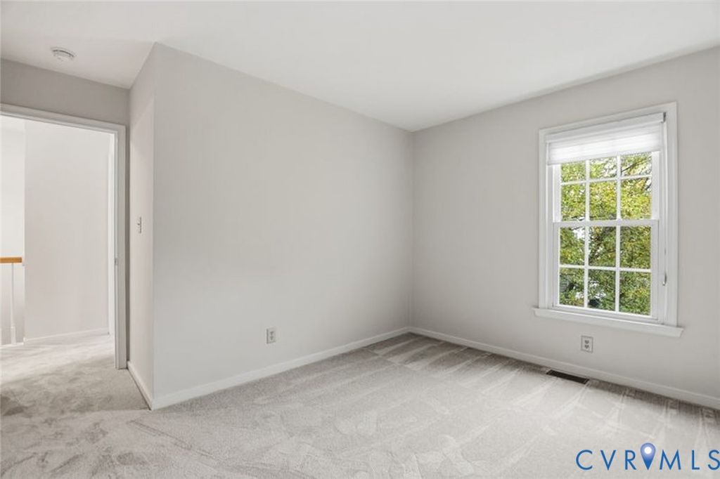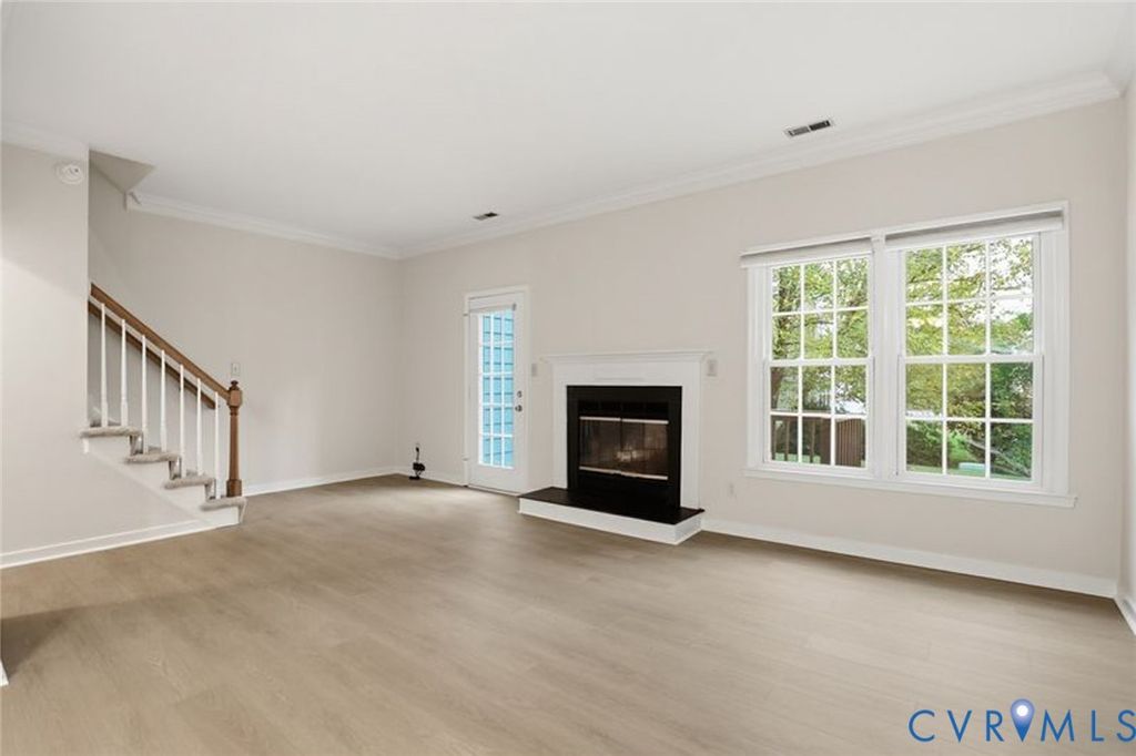 Brick front townhome in Innsbrook, convenient to everything, yet in a peaceful quiet setting. Entire interior just professionally painted (walls, ceilings, trim, inside closets). Kitchen cabinets just pro. painted white, brand new carpet & pad on stairs & 2nd fl., in 2024 New LVP flooring entire 1st floor & new toilet in 1/2 bath, NEW HVAC (inside & outside units) 6/2025, NEW Water Heater 7/2023, in 2015 all baths updated w/new vanities, accessories, faucets, mirrors, vanity lights, new tile floors & tile shower walls in 2 full baths upstairs, + new toilets. All Windows have been replaced, not sure when. HOA has a work order to replace some wood boards on rear deck & paint to match. 2 assigned parking spots in front of home!! Enter from brick front porch into foyer which has half bath, coat closet, laundry closet under stairs, & closet for HVAC/Water Heater. Crown molding runs thru the foyer into family rm & dining rm. To right of foyer is the kitchen w/double window & view to front, 2 ceiling lights, SS double bowl sink, a wonderful 5'7" wide pantry closet, tile backsplash & plenty of cabinetry. All appliances convey AS IS (no known issues). The dining rm w/chandelier & chair rail + crown molding is open to the family rm which has a wood burning fireplace. 2nd level has primary bedrm w/walk in closet (7.5 x 5.9) & private updated bath with tile shower. Updated hall bath is shared by beds 2 & 3. Bed 2 has 5' closet. Bed 3 has 3' closet and is currently set up as an office w/built in bookcases & lower cabinets - but it would also fit a single bed or crib. Linen closet in hall along with pull down attic stairs for additional storage. Deck off family room has an attached shed for outdoor items, and grassy area behind with some trees beyond. The convenient location of this home with everything Short Pump & Innsbrook has to offer just cannot be overstated....shopping, dining, grocery, pharmacy, walking trails, etc.. Quick access to highways as well & about a 20 minute drive to downtown Richmond. Great schools too!