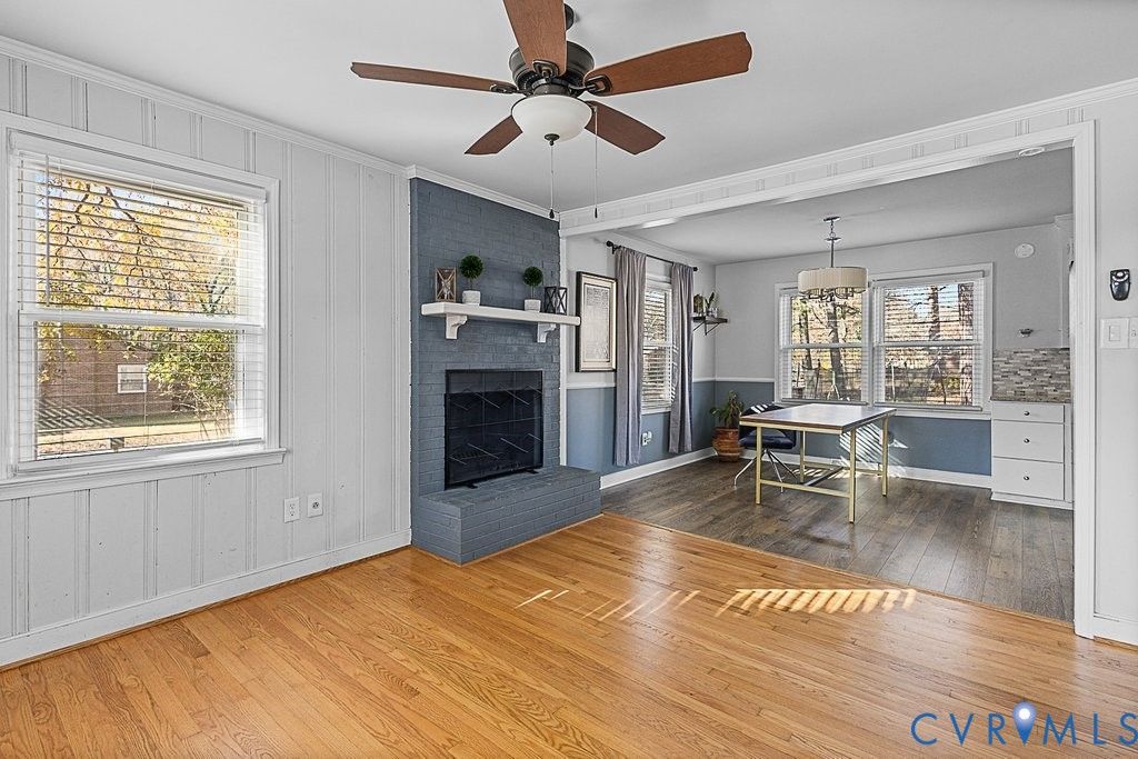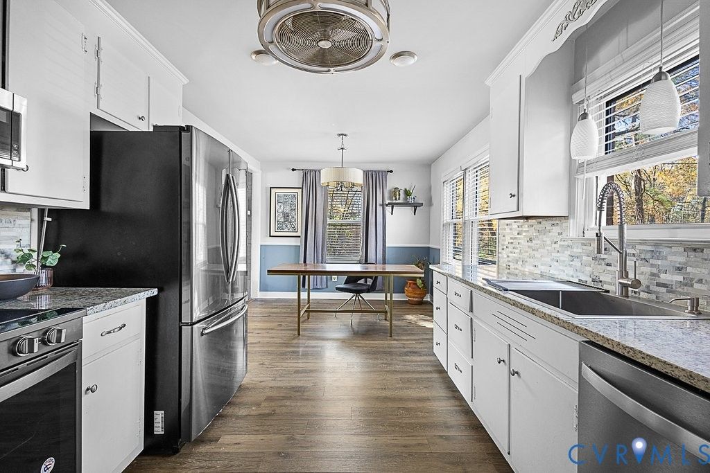 CHARMING BRICK RANCH HOME on a large corner lot in the Worthington Farms Subdivision in Richmond is ready for a new owner! Step right into the home to find a spacious LR w/HDWD, C/FAN, & PIC WNDW, dining room w/ C/FAN and WBFP, EIK w/LVP flooring, CHR MLDG, SS APPLs, plenty of white cabinetry & GRAN C/TOPs, laundry room w/ front loading washer/dryer that convey and ½ bath. Continue down the hall to find the PRIM BR w/ HDWD, C/FAN & 5x2 closet, 2 additional bedrooms w/ HDWD, C/FANS & ample closet space , a shared full bathroom w/single vanity, tiled tub/shower & linen closet, hall closet & pull down attic storage finish the interior of the home. This home boasts NEWER roof 2020, NEWER HVAC 2021, NEWER H/W tank 2020 and fenced in back yard great for pets or entertaining family and friends. Located close to shopping, dining & entertainment. This home is a MUST SEE! SCHEDULE A TOUR TODAY!