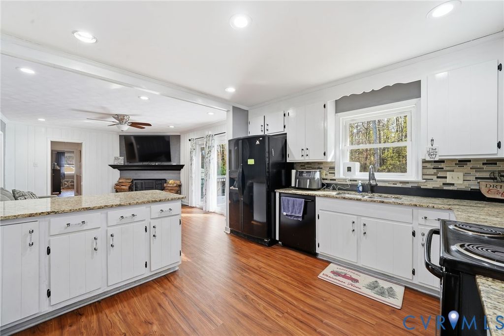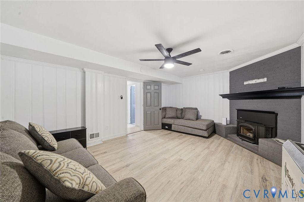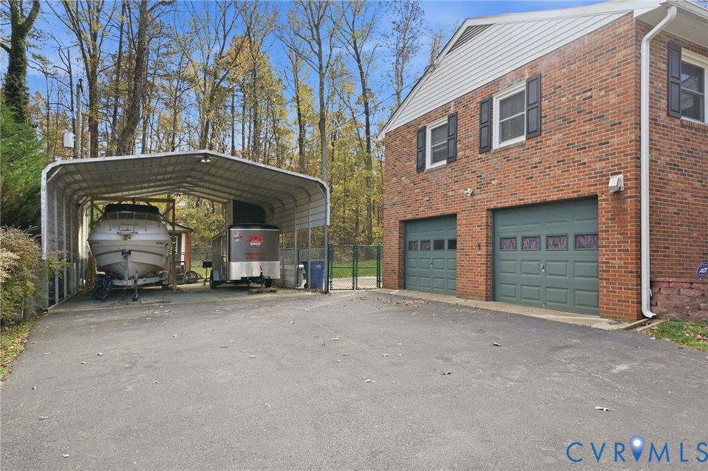Exceptional Living Redefined: Space, Style, and Functionality! Welcome to this beautifully maintained rancher in the heart of Chesterfield, offering a spectacular setup for multi-level living. The curb appeal starts with a full porch and classic brick foundation, served by a double-wide paved driveway and attached carport with a side-loading 2 car garage. The main level boasts an open, inviting feel. The front living room, illuminated by recessed lighting, transitions smoothly to the dining room, featuring a charming chair rail, both grounded by resilient LVP flooring. The kitchen is ready for gourmet meals with stone countertops, a wealth of cabinet space, recessed lighting, and rich hardwood flooring. Toward the rear, the family room provides warmth and ambiance with a wood-burning fireplace and direct access to the spacious outdoor deck and fenced yard, perfect for year-round enjoyment. The primary suite features a full bath ensuite and elegant hardwood floors. Two additional bedrooms have double closets, ceiling fans, and matching hardwood flooring. The expansive finished basement is a standout feature, serving as a fully equipped secondary suite. It offers a cozy living room with a second wood-burning fireplace, a private bedroom, and a convenient half bath. The large open flex space is perfect for a home gym, theater room, or substantial office. The basement provides sheltered entry into the oversized two-car garage. The 30x24 carport is ideal for boat storage or RV storage (NO HOA)! The 2 tier trex deck is ideal for entertaining! Enjoy unparalleled local access to nature and commerce! You are just moments from major recreation at Pocahontas State Park and Rockwood Park, while key routes like I-95 and Route 1 and retail centers along Route 10 are easily accessible for convenient commuting and shopping. Recent updates include a newer roof, fireplace flue, windows, neutral paint throughout, and so much more! Don't miss the opportunity to experience this home's versatile design, schedule your viewing today!