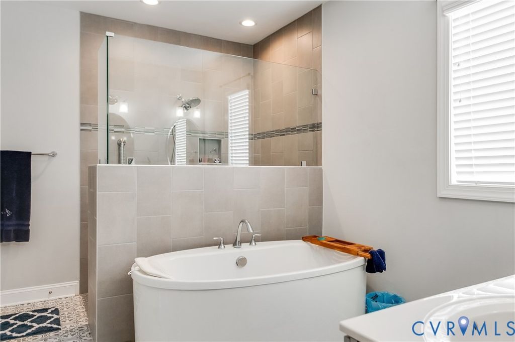 Effortlessly blending classic charm with modern convenience, this beautifully appointed home in the sought-after Parkside Village community offers inviting spaces both inside and out. A picture-perfect exterior sets the tone with timeless craftsman details, a welcoming front porch, and manicured landscaping. Inside, an open, light-filled layout creates an easy flow from the foyer through the main living areas. The heart of the home is the stunning kitchen, featuring crisp white cabinetry, quartz countertops, a subway tile backsplash, stainless steel appliances, and a generous island with seating beneath stylish lantern pendant lights. The adjacent dining area and spacious living room are designed for connection"”anchored by a gas fireplace and rich wood floors that extend throughout the main level. The first-floor primary suite is a true retreat, complete with a large walk-in closet and a luxurious en-suite bath boasting a freestanding soaking tub, oversized tiled shower with dual shower heads, and elegant finishes. An additional bedrooms offer flexibility for guests, a home office, or hobbies. Outdoor living is equally inviting"”step out to a covered rear porch with a wood-paneled ceiling and ceiling fan, perfect for relaxing in any season, or enjoy morning coffee on the adjoining patio overlooking the beautifully landscaped backyard. Additional highlights include a two-car garage and a whole-home generator, providing peace of mind for years to come. Nestled in a serene setting just minutes from shopping, dining, and interstates, this home perfectly balances style, comfort, and low-maintenance living in one of Glen Allen's most desirable 55+ communities.