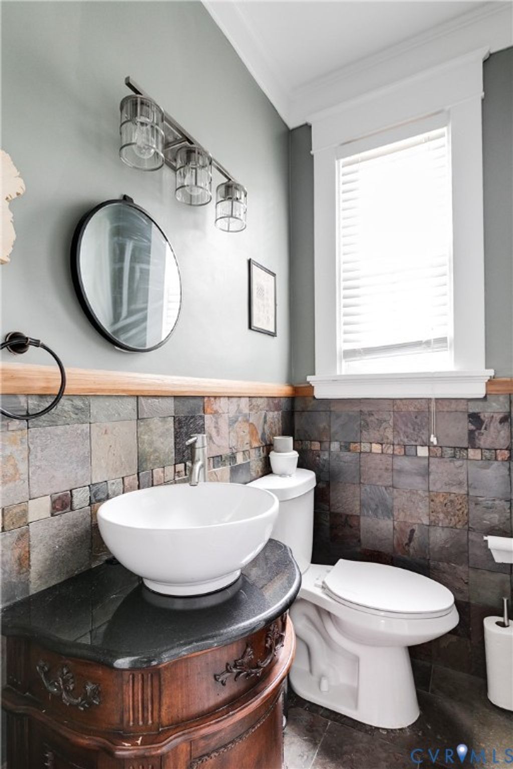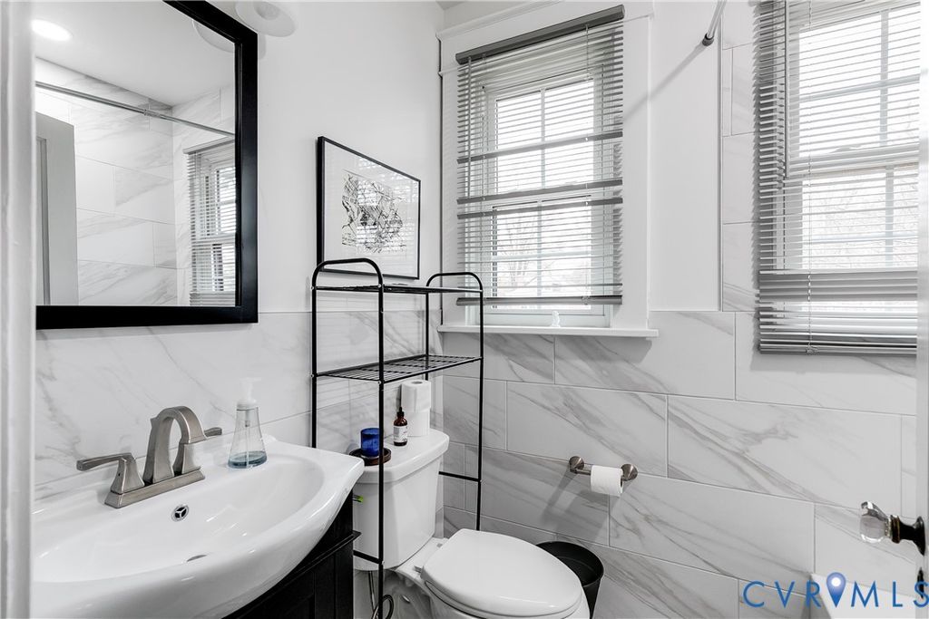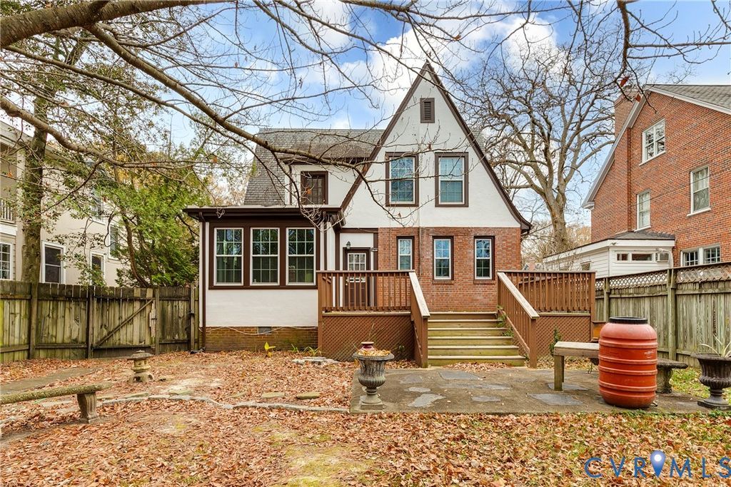 Welcome to 4809 E Seminary Ave! This classic North Ginter Park Tudor style home is located on a desirable block of E Seminary Ave., and has been updated and well maintained! On the exterior you will find brick and stucco siding, vinyl replacement windows, dual zoned heat pumps, slate roof, well maintained landscaping, fenced in rear yard, newer deck, concrete patio, and a detached garage that is great for storage. Upon entering the home, you are greeted by the large foyer with TILE floors. This opens up nicely into the dining room that features a ceiling fan and hardwood floors. The large kitchen features TILE flooring, WHITE cabinets, and STAINLESS appliances. The large living room features hardwood floors, recessed lighting, a fireplace with surrounding built-ins, a bay window with a bench seat, and French doors leading to the office/sunroom. The office/sunroom also boast hardwood floors and recessed lights. Rounding out the first floor is the updated hall bath. Upstairs you will find the primary suite that boast hardwood floors, ceiling fan, and a completely RENOVATED primary bath with tile flooring, tile shower, new vanity, and new toilet. The two other bedrooms upstairs both feature HW floors, ceiling fans, and nice closets. Rounding out the second floor is a RENOVATED hall bath featuring new tile flooring, tile surround in the tub/shower, new vanity, and new toilet. Downstairs you will find an unfinished basement. There is a laundry area, and multiple other storage areas there. This would be great for storage or future expansion. Come see all that this home has to offer today!