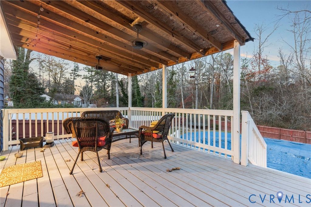 Calling all first time home buyers! Discover comfort, convenience, and charm in this beautifully updated ranch-style home located in the heart of Chester, VA. Just minutes from shopping, popular restaurants, and quick access to Interstate 95, this property offers the perfect blend of everyday ease and modern living. This lovely ranch style home is nestled on a quiet, cul-de-sac lot on almost half an acre complete with a long paved driveway and a full front porch. The interior offers an inviting, open layout featuring a fully renovated kitchen (2024) designed to impress - stainless steel appliances, butcher block countertops, and a stylish tile backsplash that elevates the entire space. The living room has recessed lighting, beams and a stylish brick feature wall with an electric fireplace (2024). The 1,100+ square foot floor plan is rounded out with two nice sized bedrooms and a primary bedroom with an en-suite. The backyard is a true retreat - thoughtfully landscaped with stepping stones and lush greenery, it leads to a spacious, two-tiered deck perfect for hosting summer cookouts or unwinding at the end of the day. Take advantage of the above ground pool for endless warm weather fun and relaxation. If you're into DIY, the detached storage shed has electricity and is the perfect workshop for home projects. Schedule your showing today!