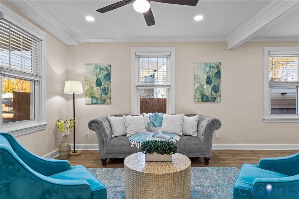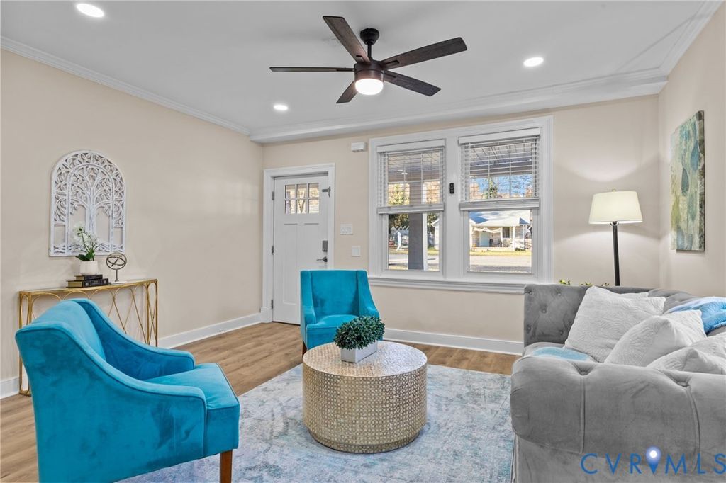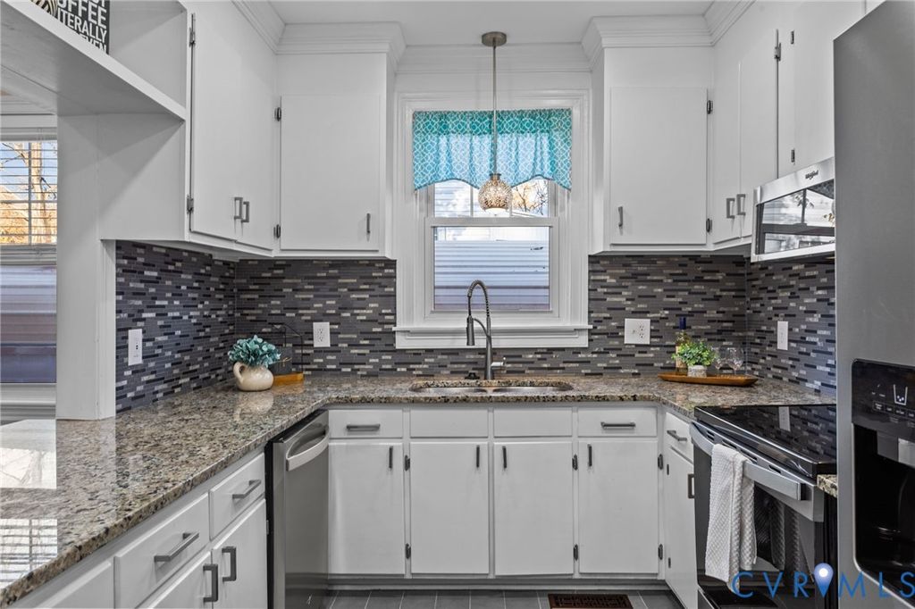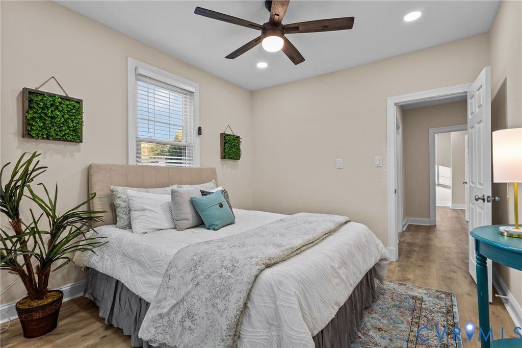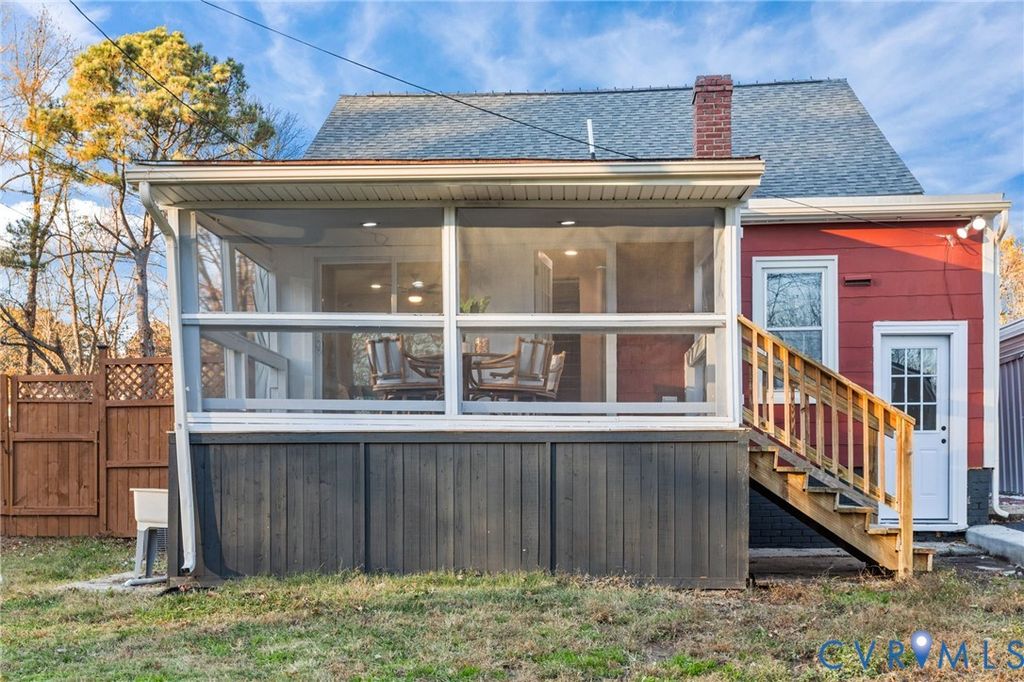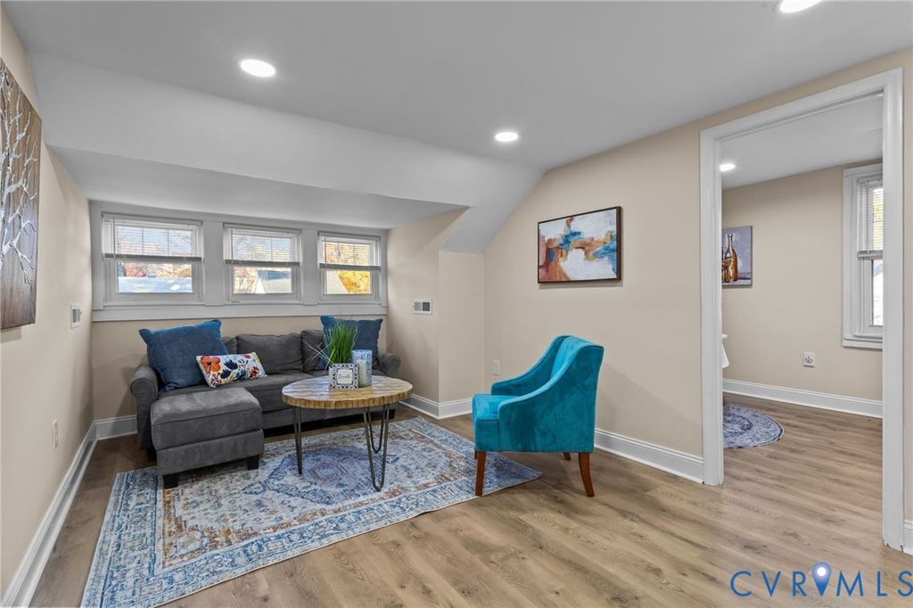 So much to love! This attractive cape cod has the perfect blend of mid-century charm and modern upgrades; with an inviting full front porch, open entertaining space, first-floor primary bedroom with direct sliding door entry to a relaxing screened back porch, new recessed lights and ceiling fans throughout, new water-resistant LVP flooring, granite counters and new stainless appliances in the kitchen, and another ample-sized first-floor bedroom that would also make a perfect home office. Now we get to the fun part. This home is set up perfectly for roommates/in-law/multi-generational situations. With direct entry from the back porch into the utility room, the rear staircase takes you up to another sitting room, kitchenette, bedroom, and full bath with tub/shower! Doublewide paved driveway with additional on-street parking area, enclosed carport with lighting for a great workshop/hobby area, oversized shed for tons of storage, and an additional attached storage area behind the house. The property extends back towards natural wetlands, so you'll get to enjoy natural privacy rather than looking into a neighbor's backyard. The location gives you a quick commute to nearly anywhere north of the river, approximately 5 minutes to Lewis Ginter Botanical Gardens, Belmont Golf Course, and the Shops at Lakeside; and only 15-20 minutes to Downtown Richmond, Short Pump, or Carytown!