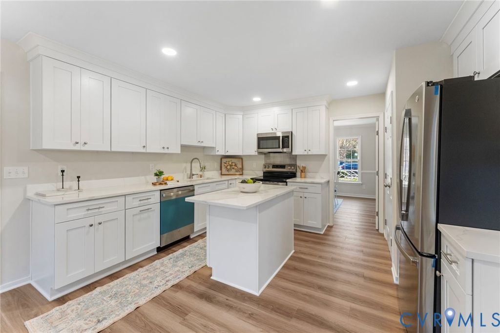 Welcome to 11709 Sandy Bluff Rd, a fully renovated Colonial nestled in one of Richmond's most desirable West End communities. Offering 4 bedrooms, and 2.5 bathrooms, this home blends timeless charm with modern style across every level. Step inside to a bright, airy living space featuring recessed lighting, wide-plank LVP flooring, fresh designer paint, and a cozy gas fireplace framed by crisp white trim. Large windows fill the home with natural light, highlighting the thoughtful finishes throughout. The completely transformed kitchen is a showstopper, boasting new white shaker cabinetry, quartz countertops, stainless steel appliances, an island perfect for meal prep, and abundant storage. A spacious dining room with updated lighting offers an inviting setting for gatherings. Upstairs, the renovated bathrooms impress with sleek tilework, upgraded vanities, and stylish fixtures. All four bedrooms feature clean lines and generous space, including a serene primary suite outfitted for comfort. The third-floor bonus room, freshly finished with new carpet, lighting, and its own newly installed mini-split, makes an exceptional playroom, game room, home office, or private retreat. Outside, the fenced-in backyard offers room to roam beneath mature hardwoods, ideal for pets, play, or future outdoor living projects. The classic brick exterior, charming front porch, and manicured landscaping create standout curb appeal. Every inch of this home has been thoughtfully updated, flooring, paint, fixtures, kitchen, bathrooms, and more, providing a truly move-in-ready experience in a sought-after location near top schools, parks, shopping, and Short Pump conveniences. This is the West End renovation you've been waiting for"”don't miss your chance to call it home.