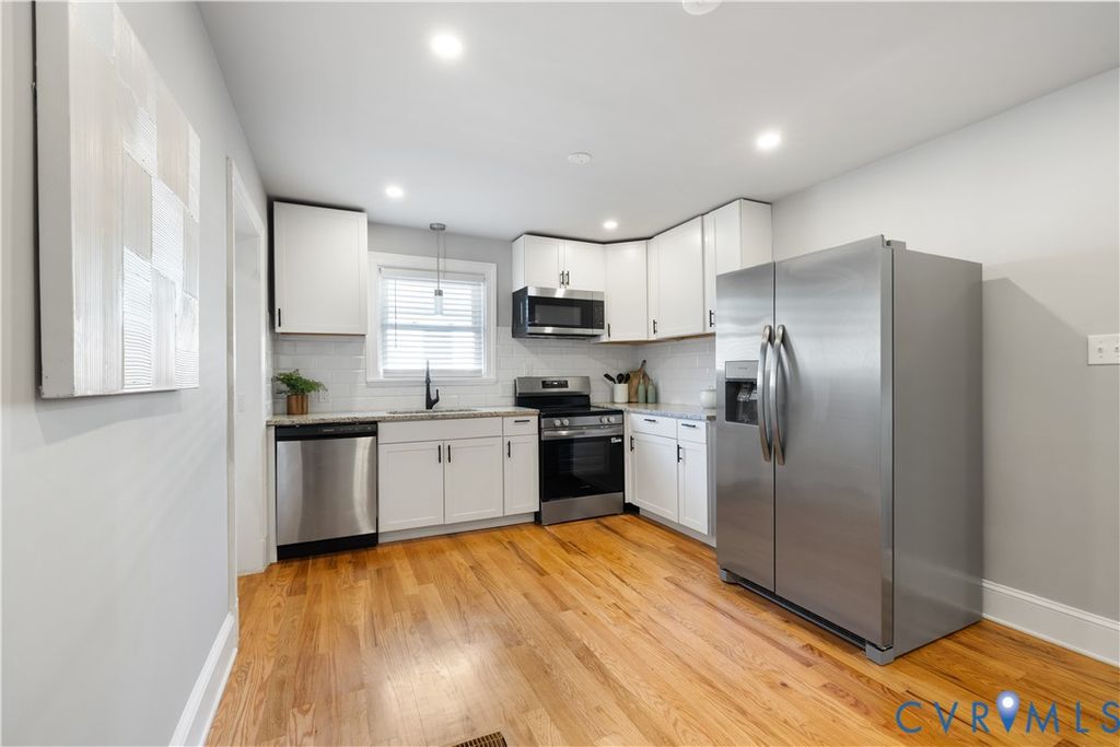 Welcome home to 5105 Salem St., where modern living meets thoughtful renovation in this beautifully updated Richmond gem. Offering 3 bedrooms, 2.5 bathrooms, and a spacious 350 sq. ft. bonus room, this home features a stunning new primary suite with recessed lighting, a custom walk-in closet, and a gorgeous updated bathroom. The eat-in kitchen impresses with wood floors, granite countertops, new cabinetry, stainless-steel appliances, white subway tile backsplash, and bright recessed lighting. The inviting living room offers a contemporary electric fireplace, LVP flooring, recessed lighting, and access to the charming side porch. A classic arched entry leads to two additional bedrooms with LVP flooring, ample closet space, and an updated hall bath. Upstairs, the versatile bonus room is complete with a renovated half bath and could be used as a media room, playroom, home office, or guest retreat. Enjoy low-maintenance outdoor living with a private turf patio, a renovated covered side porch, and a spacious yard. A brand-new HVAC system adds comfort and efficiency. Ideally located near top Richmond destinations including The Boathouse at Rocketts Landing, Triple Crossing Beer, Stone Brewing, Blue Atlas, and parks like Chimborazo and Libby Hill, plus convenient access to I-95 and a nearby bus stop. This move-in-ready home is truly a standout, just unpack and enjoy!