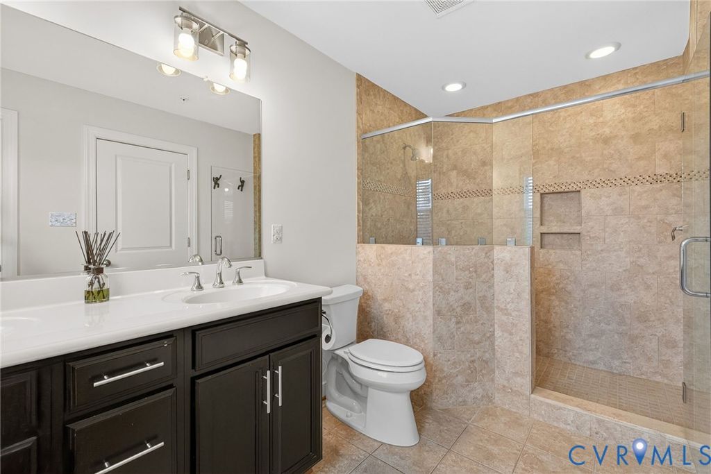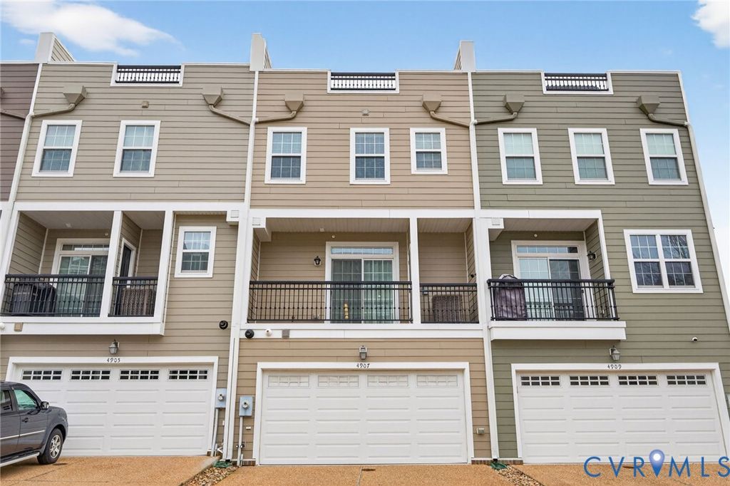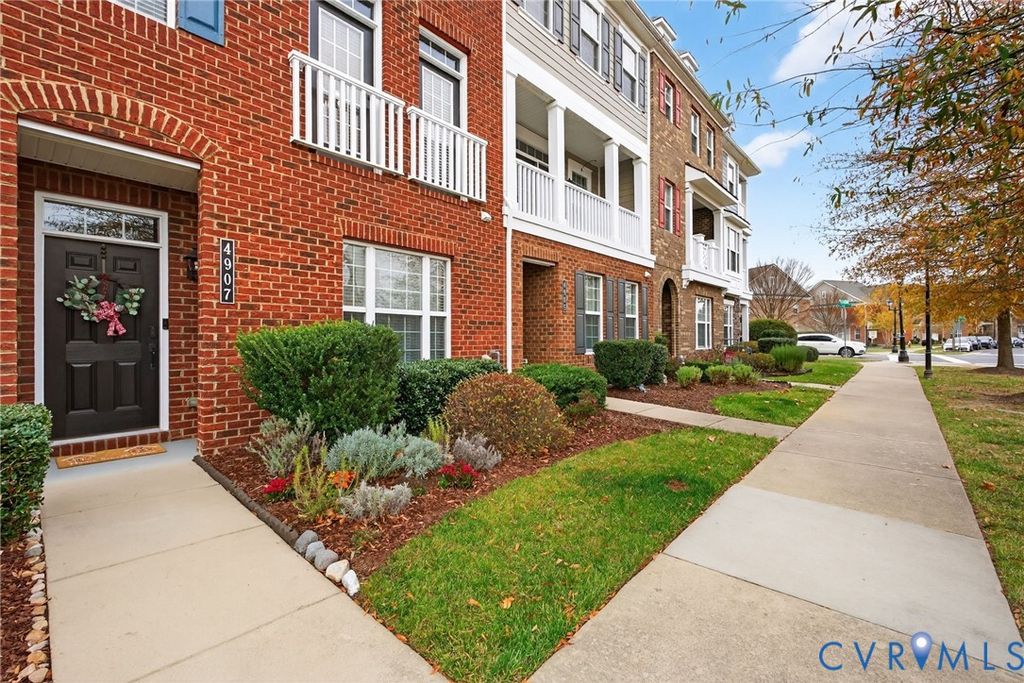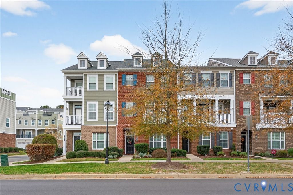 This elegant 4-story brick New Town Williamsburg townhome offers unbeatable convenience w/ grocery stores, restaurants, banks, fitness options, medical offices, & local shops all within walking distance. Colonial Williamsburg, William and Mary, Busch Gardens, & Water Country are all just minutes away. The floor plan is ideal for extended or multi generational living with 3 private master suites, each w/ its own bathroom & walk in closet. 1 suite is on the 1st floor, perfect for in laws or older children, & the other 2 are on the 3rd floor. The 2nd floor offers an open living room, dining area, half bath, & a chef's kitchen w/ gas cooking, granite island, & a brand new LG French door refrigerator. The living room includes a electric fireplace, & the porch has a gas hookup for grilling. The 4th floor features a sitting area that opens to a spacious rooftop terrace w/ great views. The HOA recently completed exterior updates including soft washing, new trim & paint, siding replacement, & a full roof replacement, plus offers year round community events & a great pool.