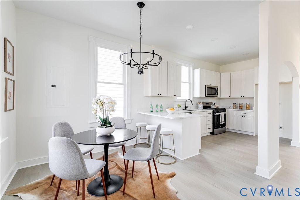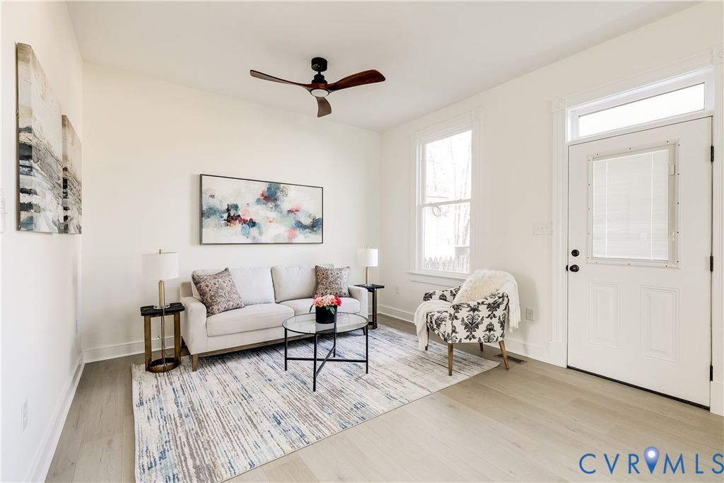 Enjoy one of the best locations in Church Hill a block from The Roosevelt, Sub Rosa, Emerald Lounge, with Pizza Bones, Beet Box just beyond and so many more shoppes and local stores and parks that make this neighborhood one of the best in Richmond. This fully renovated, detached home offers 3 bedrooms, 2.5 baths and nearly 1,650 SF of living space sitting on a larger lot boasting a nice sized back yard with alley access and ability to build a garage or ADU. Walk onto the covered front porch and through the original double doors with wainscot inlay into the foyer where you have sight line into the Living Room. Featuring great natural light throughout the day with taller ceilings, ceiling fan this is a great room to relax or entertain gusts in. Walk through the arched hallway into the kitchen featuring classic white shaker style cabinets with soft close doors and drawers, quartz counter tops, SS Appliances, gas cooking, a pantry and a nice sized overhang with an eat in area. Off the kitchen you'll find a larger, private rear den perfect for hanging out serves as a 2nd more informal living space which walks out onto the massive 13x20 rear deck perfect for hanging out with lots of privacy! The primary suite features plush carpeting, ceiling fan and a nice sized walk in closet as well as an ensuite with tile floors, walk in tile shower with niche! The spacious rear 2 bedrooms also feature ceiling fans, double closets and a jack and jill bath with a nice sized vanity with quartz counter tops, tile floors, and a tub/shower with tile to the ceiling! Laundry room located on the 2nd floor has side by side hook ups and storage above. Stop by and see this one for yourself and enjoy the proximity to amenities but all the peace and privacy you need!