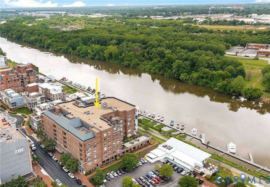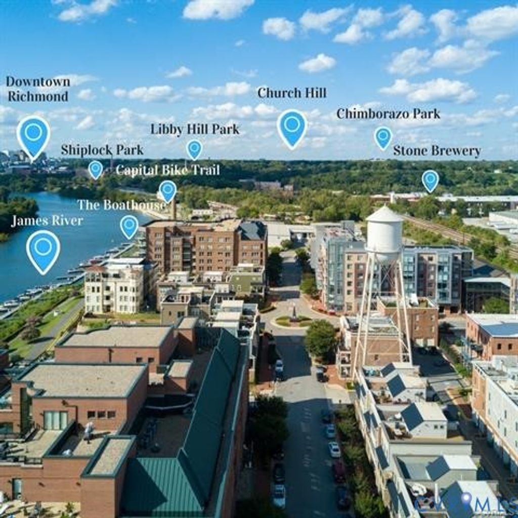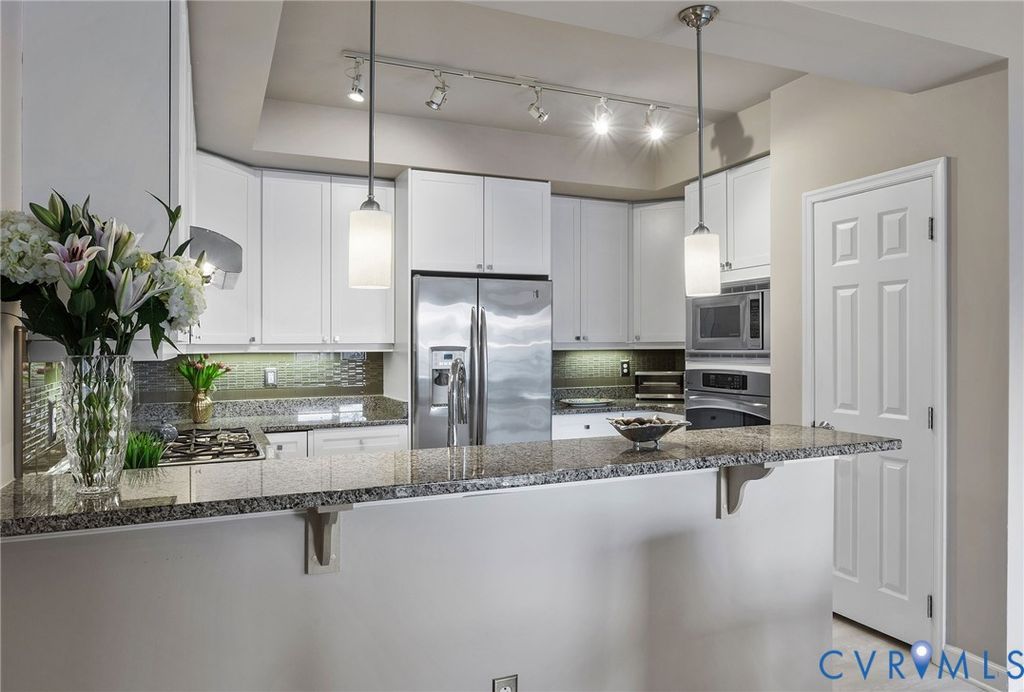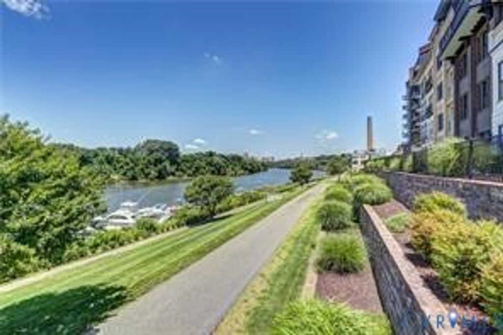 Newly Renovated!! Discover the open concept, bright and airy living space, leading to Balcony with River Views. The Spacious Primary suite offers stylish New LVT floors and a large walk-in closet. Find comfort in the renovated Primary Bath with an oversized shower and a second marble-top vanity with wonderful storage. Bedroom two enjoys River views and full bath. Lovely upgrades include motorized blinds, fresh paint, new LVT flooring, and designer lighting. The kitchen boasts S/S GE appliances, granite counters, a 5-burner gas stove, wall oven, pantry and microwave for culinary pursuits. Additional bar seating invites casual gatherings. The flex room, suitable for a den or office, adds versatility. Secure deeded parking in the garage ensures convenience. Enjoy Riverfront living and the excitement of the Capital Trail, with easy access to downtown, historic Church Hill, a 57-slip Marina, fitness center, volleyball courts, and bike storage. Explore nearby attractions like Boathouse Rest., Island Shrimp, and Stone Brewery, immersing yourself in the natural charm and recreational opportunities that Rocketts offers. Come, be part of this inviting retreat. Also great for investor, current rental availability in this Luxury riverfront building.