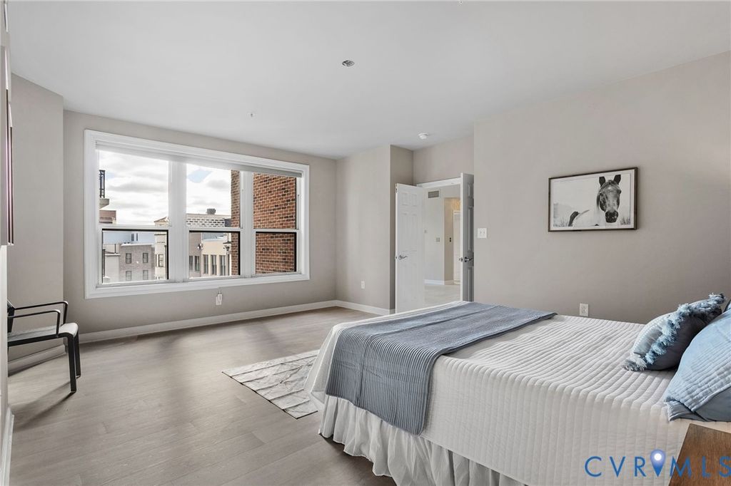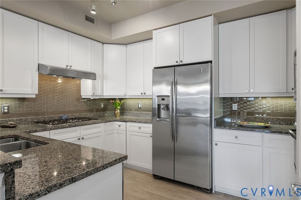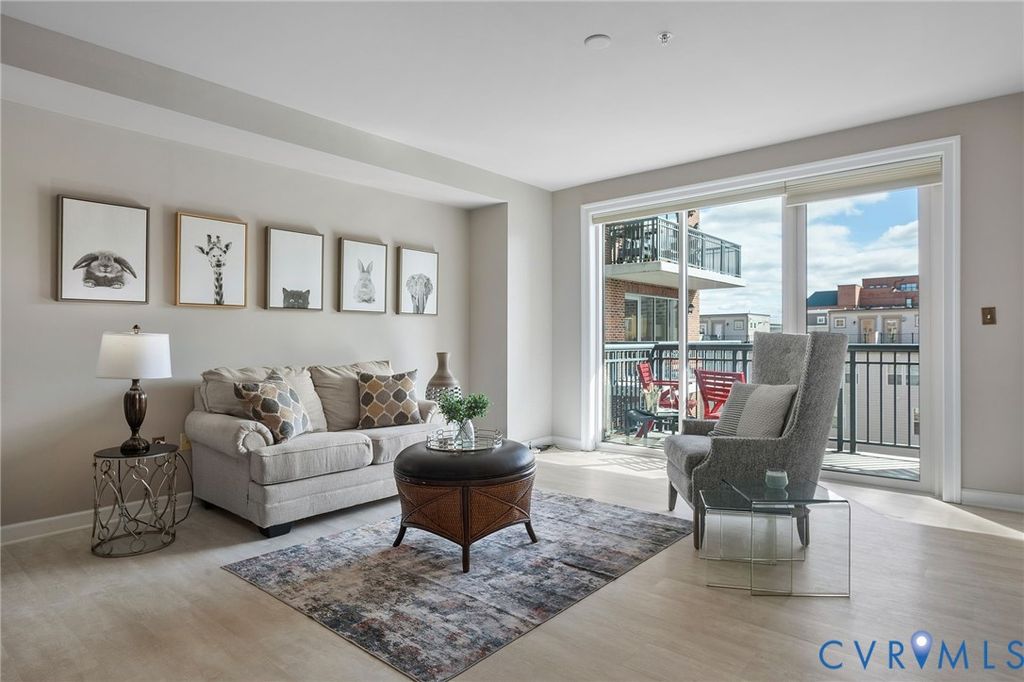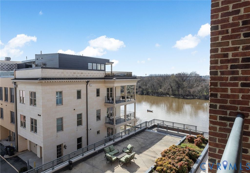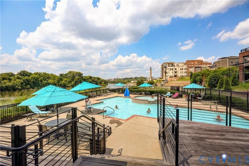 Newly Renovated!! Discover the open concept, bright and airy living space, leading to Balcony with River Views. The Spacious Primary suite offers stylish New LVT floors and a large walk-in closet. Find comfort in the renovated Primary Bath with an oversized shower and a second marble-top vanity with wonderful storage. Bedroom two enjoys River views and full bath. Lovely upgrades include motorized blinds, fresh paint, new LVT flooring, and designer lighting. The kitchen boasts S/S GE appliances, granite counters, a 5-burner gas stove, wall oven, pantry and microwave for culinary pursuits. Additional bar seating invites casual gatherings. The flex room, suitable for a den or office, adds versatility. Secure deeded parking in the garage ensures convenience. Enjoy Riverfront living and the excitement of the Capital Trail, with easy access to downtown, historic Church Hill, a 57-slip Marina, fitness center, volleyball courts, and bike storage. Explore nearby attractions like Boathouse Rest., Island Shrimp, and Stone Brewery, immersing yourself in the natural charm and recreational opportunities that Rocketts offers. Come, be part of this inviting retreat. Also great for investor, current rental availability in this Luxury riverfront building.