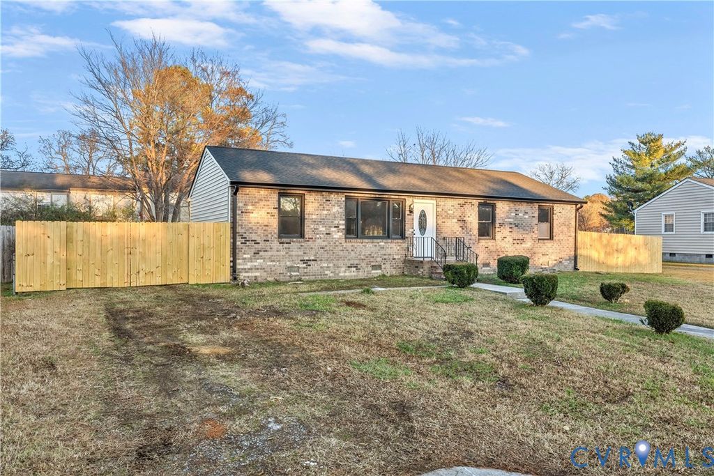 Experience this Beautiful fully renovated traditional brick front rancher this 4 bedroom, 2 bathroom brick home has been completely remodeled from top to bottom! From the inviting front porch to the stylish interior, every detail has been thoughtfully updated to blend modern comfort with classic charm. Updates include a brand-new HVAC system, new electrical panel, and new water heater. The modern updated kitchen features new gray cabinets with quartz countertops, stainless steel appliances, a custom built island with accent wood paneling. Hardwood floors in common areas creating a fresh and seamless look. Both bathrooms have been fully renovated, featuring new tile, modern vanities, with stylish finishes. Step outside to the spacious backyard and enjoy the new patio, with a fenced-in yard providing privacy and security, ideal for family & friend or entertaining. Located within walking distance to VSU and just minutes from shopping and Fort Gregg-Adams, close to I95 and 288 this home is as convenient as it is beautiful. Don't miss out schedule your showing today and come see for yourself!