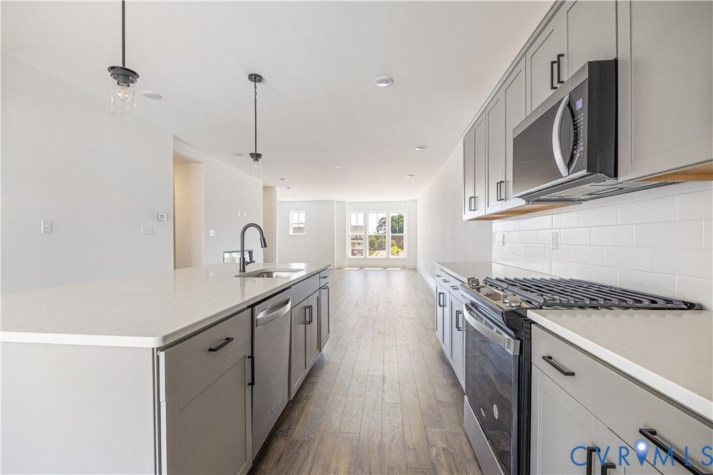 Welcome to the Laurel by Main Street Homes! This BRAND NEW Move-In Ready Energy Advantage Plus 3 story townhome offers 3 bedrooms, 3.5 baths, an electric fireplace, oak stairs from 1st to 2nd level, rear entry 2-car garage, tankless water heater, rear covered deck, and Hardie-plank siding. The first floor includes a large flex room with laminate flooring, a full bathroom, and a coat closet. The second-floor open concept offers a large great room, dining room, powder room, pantry, and a rear kitchen layout complete with quartz countertops, ceramic tile backsplash, stainless steel appliances, and a large extended island. The third floor includes a primary bedroom suite with a large walk-in closet and an ensuite bathroom with a Euro shower, double bowl vanity, water closet, two additional bedrooms, a full bathroom, and a laundry room. Shire Walk amenities include sidewalks and benches throughout the community, gathering space with a pergola and fire pit, and green spaces to relax and socialize. This is a low-maintenance community in Henrico County conveniently located close to dining, shopping, and entertainment at Short Pump Town Center and the surrounding area. Come see why the Laurel is the perfect place to call home! Henrico County, located just 12 miles from the Richmond International Airport, offers an exceptional blend of parks and natural beauty. Over 40 parks with lakes, rivers, and miles of trails are located alongside premier recreational amenities, including golf, tennis, pickleball, cricket fields, baseball diamonds, disc golf, skateparks, and youth/adult leagues. Residents love living in Henrico County for its championship pickleball courts at Pouncey Tract, indoor and outdoor sports complexes, cricket tournaments at Deep Run and Castle Point, and top-tier golf and tennis options.