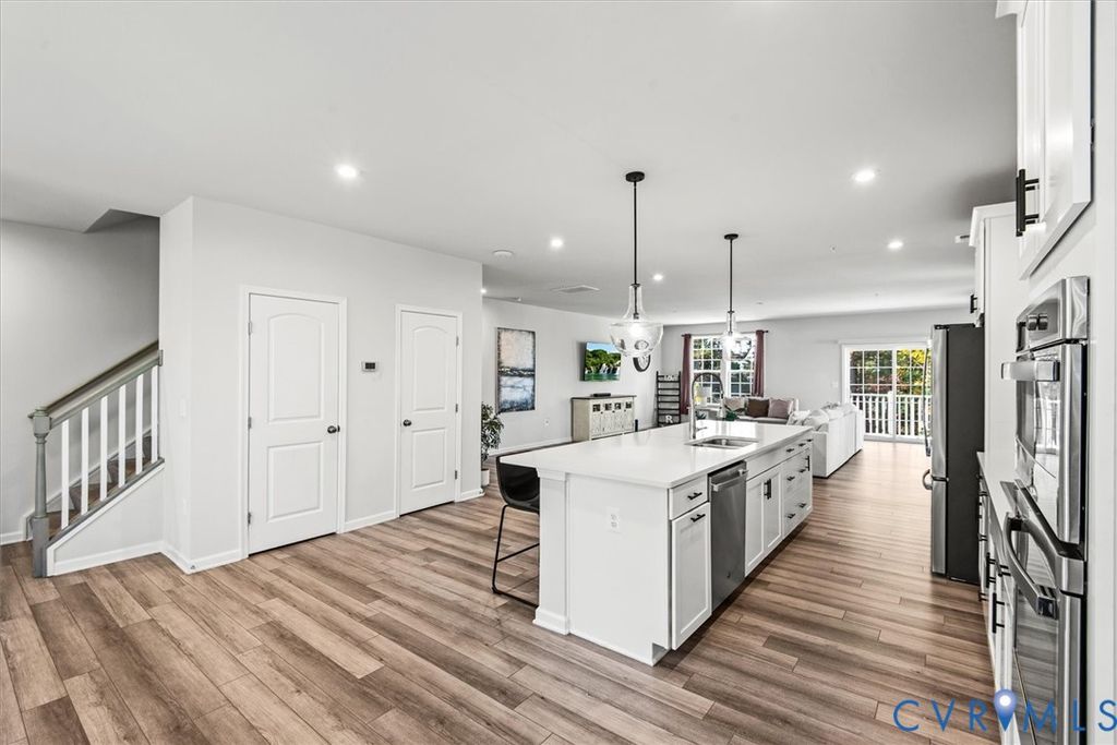 Welcome to this beautiful end-unit condo in the conveniently located Wistar Glen community, offering low-maintenance living with the space, privacy, and natural light of a townhome. With additional windows and facing sunlight, this home feels bright, open, and inviting throughout. The home features an open-concept layout with high ceilings, seamlessly connecting the kitchen, living, and dining areas, powder room, and generous storage. The gourmet kitchen is beautifully appointed with stainless steel appliances (including wall oven), a large pantry, and a spacious dining area that opens to the rear patio"”ideal for both everyday living and entertaining. Upstairs, the expansive primary suite includes an oversized walk-in closet and a private bath with dual vanities and tile floor and shower. Two additional bedrooms, each with excellent closet space and natural light, share a full hall bath featuring a double vanity and soaker tub. Second-floor laundry (washer and dryer included), plus multiple linen and utility closets, add exceptional convenience and storage. Additional highlights include a rear-entry attached one-car garage, and ample guest parking. Located just minutes from Willow Lawn, shopping, dining, and major highways, this turnkey end unit offers comfort, convenience, and style in one of Henrico's most desirable locations.