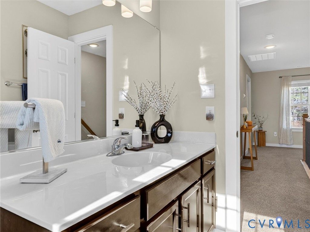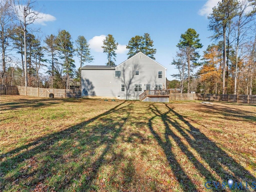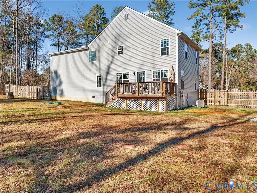Nestled on just over an acre in peaceful rural Hanover County, this newly built (2023) home offers space to spread out without sacrificing convenience or the wait for new construction! Step inside to a bright, open layout tailored for today's lifestyle. The kitchen shines with recessed lighting, a large bar-style island perfect for quick bites or conversation, granite countertops, stainless steel appliances, decorative backsplash, ample cabinetry, and pantry. The adjacent dining area with rustic light fixture and open living room create a smooth effortless flow. Custom built-in corner pet crate in the living room welcomes your furry friend without taking up space! Upstairs - the primary suite features a cozy retreat with an ensuite bath with dual vanities, shower, large soaking tub, and oversized walk-in closet. Hallway provides easy access to the Pull-down attic for storage, Laundry Closet, and Full Bathroom. Two additional bedrooms have plush carpeting, generous closets, and ceiling light/fan fixtures. You'll also find a flex room that can serve as an office, playroom, or an optional bedroom! A 2-car spacious attached side-load garage provides convenient direct entry. Modern upgrades include NEST thermostats, keyless front door entry, a Culligan water-softener system, oak stairs, with ornate solid bannisters. Enjoy peaceful evenings rocking on the front porch swing or take full advantage of the spacious fenced backyard with deck - perfect for outdoor fun, gardening, enjoying beautiful sunsets, or adding future personal touches! This home delivers unique features, a thoughtful layout, and a setting that balances privacy with proximity. Convenient to the charming historic town of Ashland or just minutes from Virginia Center Commons area with shopping, dining, entertainment, and more! An ideal retreat for those who crave both comfort and accessibility in a home!