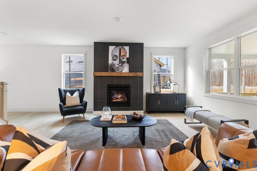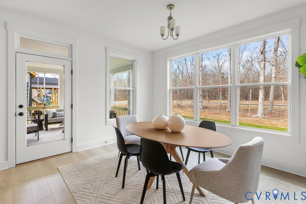 The Riverton is a two-story home featuring four bedrooms, two and a half baths, and a front-load garage. The first floor offers open-concept living, featuring a kitchen with an island, a walk-in pantry, and a morning room open to the spacious family room. A private home office is tucked directly off the foyer. At the back of the home, you'll find the primary bedroom, a true retreat, featuring two spacious walk-in closets, an ensuite bath with a double vanity, a garden tub, a walk-in shower, and an ensuite laundry. A mudroom and a spacious rear deck complete the first floor. Upstairs, bedrooms two and three, both with walk-in closets, share a full hall bath with a tub/shower combo. Bedroom four features a private, ensuite bath and an adjoining sitting area. A loft, a large game room, and a laundry room complete the second floor. RounTrey offers a strong sense of community with year-round events and resort-style amenities, including a zero-entry pool, water slide, fitness center, tennis courts, walking trails, and a gated dog park. Its location along Swift Creek Reservoir offers scenic views and access to top-rated schools. The location is minutes from major shopping, dining, and medical facilities and only 20 minutes from downtown Richmond.