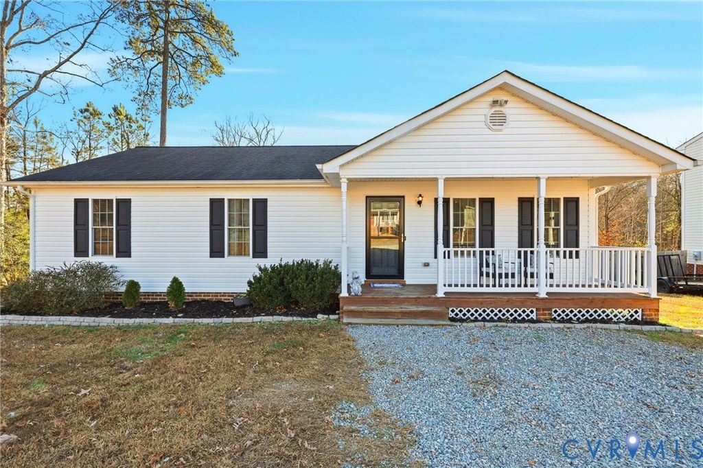 Welcome to this move in ready, adorable property. This lovely 3 bedroom, 2 full bath home is situated conveniently just outside of Hanover County in Aylett. Inside you will find a family room area with a vaulted ceiling, opening up into the kitchen, which is also vaulted. The kitchen has plenty of cabinet and countertop space, with a eat in Island area. There is a dining area in the kitchen as well. Off the kitchen, you will find the laundry room. The primary bedroom is a nice size, with good closet space and an en-suite bathroom with tub/shower. Both of the additional bedrooms have double closets. All bedrooms have ceiling fans and carpet. You will love sitting on the front porch of your new home, sipping some warm coffee on these brisk mornings or enjoying an evening of stargazing on the back deck. There is even a neighborhood pond (stocked), that you can enjoy summer nights out casting your reel. You can make this home yours by the end of the year, by scheduling a showing today.