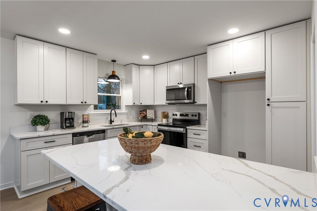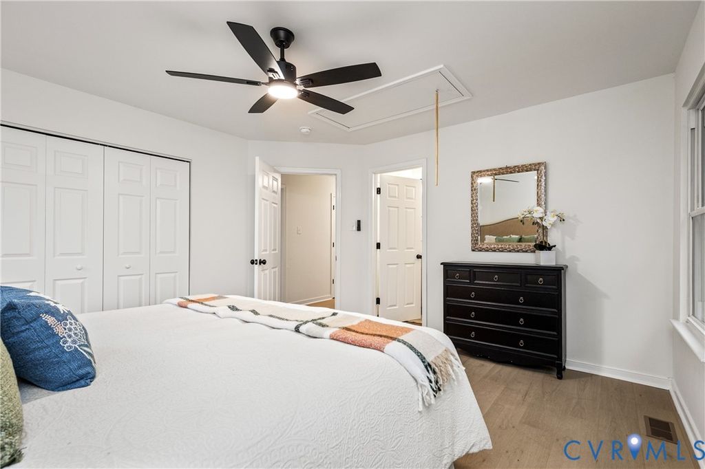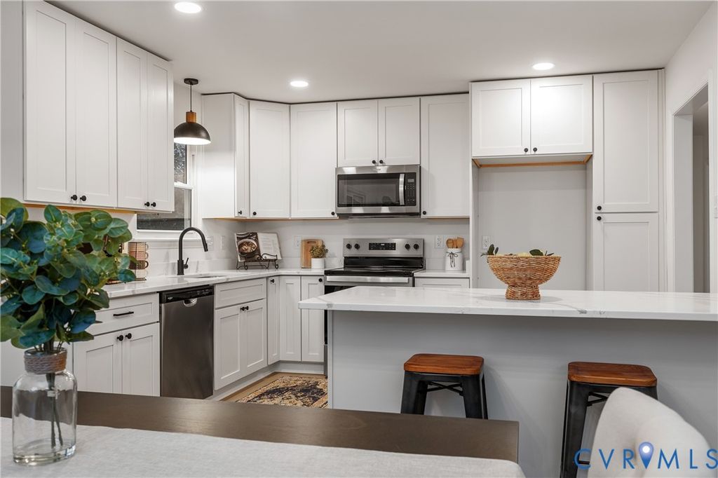 Ready to call 5924 St. Moritz Drive your own? This impeccably maintained and beautifully updated split-foyer home offers more comfort, modern style, and functional living than meets the eye. As soon as you step inside, you're greeted by brand-new LVP flooring, fresh neutral paint, and an inviting atmosphere that feels completely renewed and move-in ready. The spacious upstairs living room features Palladian windows that fill the space with natural light, complemented by contemporary wooden ceiling fans that add warmth and character throughout. The open dining area flows seamlessly into the updated kitchen, complete with granite countertops, stainless steel appliances, and sliding doors that provide direct access to the back deck: ideal for grilling, outdoor dining, and enjoying evenings with family and friends. The upper level includes two bedrooms and a beautifully refreshed double-vanity bathroom that also connects to the primary bedroom. A full-length unfinished attic with pull-down access offers excellent storage or future expansion potential. Downstairs, a second spacious family room awaits, featuring a fireplace insert that adds charm and functionality. This level includes two additional bedrooms, a second full bathroom, a linen closet, under-stairs storage, and a dedicated laundry area with hookups and extra storage space. A rear door leads directly to the backyard, while the upper deck includes a staircase for easy access to both levels from the outside. With a new 2025 HVAC system and a new 2025 electric water heater, along with several other updates, this home provides that peace of mind for years to come. A paved driveway offers ample parking for multiple vehicles, with additional street parking available. Located just minutes from the heart of Manchester, local shops, dining, major conveniences, and everything this Richmond pocket has to offer, this home brings comfort and convenience together in one incredible package. Don't miss the opportunity to make it yours!