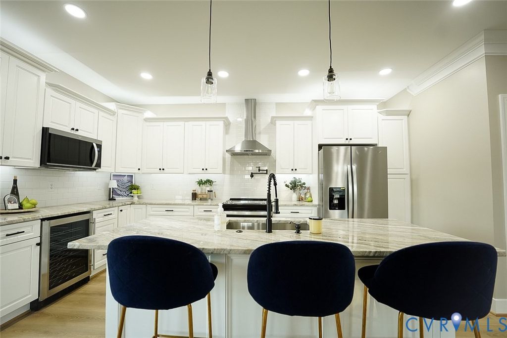 Stunning BRAND NEW home with OVER 0.5 acre lot, in one of the most sought-after and convenient areas in Chesterfield County. This home is loaded with features and upgrades that usually would cost you thousands of dollars with other builders, to include: 9 ft ceilings on first floor, LVP floors throughout, Electric outlets and Recessed lights galore, Custom lighting in steps, Wrought iron balusters, Crown and Custom molding, Beautiful tile/granite work in all baths, Concrete full front porch. Exterior Soffit lighting around house. The kitchen is truly a dream! It offers white cabinets with crown molding and above/under mount lighting, granite countertops, pot filler, all SS appliances including refrigerator and wine cooler, vented to the exterior hood and a huge island. You'll fall in love with the open floor plan. 1st floor bedroom with full bath perfect for in-laws or visitors. Private office/study. Huge primary bedroom with 2 large walk-in closets, double doors and gorgeous private bathroom. Back wooden deck. Easy access to major highways. Tons of shops, restaurants, supermarkets and everything that Hull Street has to offer. The quality of this new construction, along with the location and all the upgrades included, make this home one of a kind! Pictures don't do justice! You have to see it for yourself!