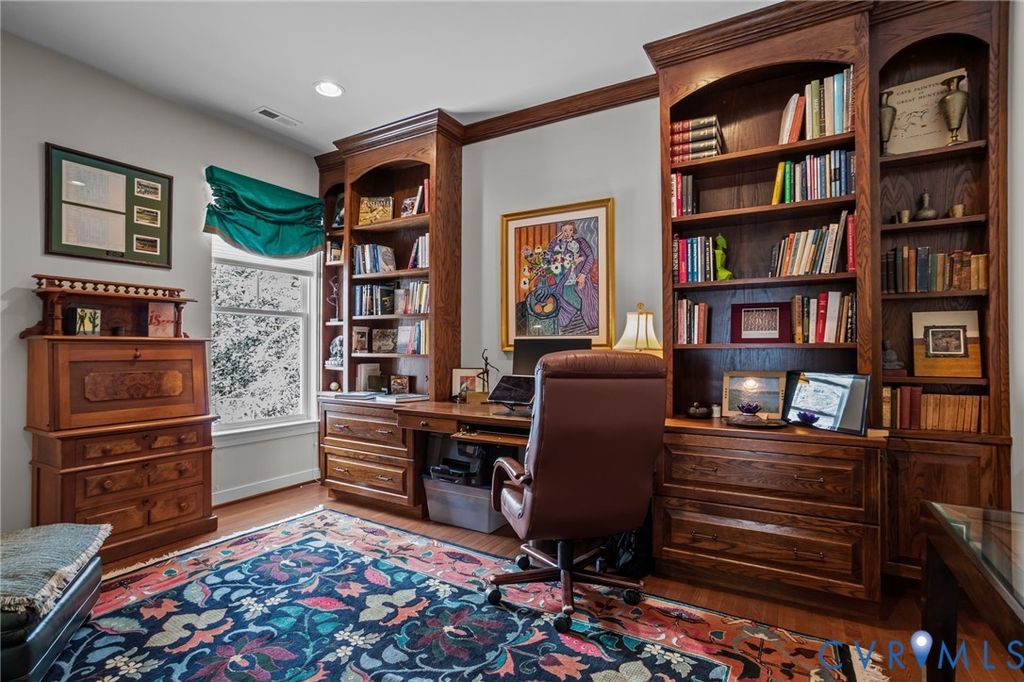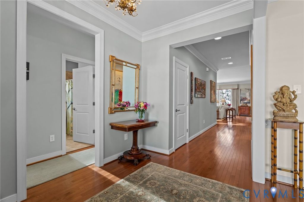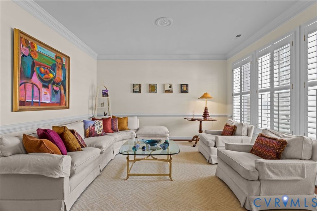 Welcome to West Oak"”one of Richmond's most sought-after gated communities, where luxury, privacy, and timeless design come together seamlessly. This beautifully crafted 4-bedroom, 3-bathroom home offers refined living with generous interior spaces, and tranquil outdoor surroundings. A charming front porch sets the tone as you enter to find hardwood floors throughout the main level and 9' ceilings that create an open, airy feel. The gourmet kitchen boasts premium cabinetry, granite countertops, gas cooking, and effortless flow into the dining area and family room. Custom built-ins span an entire wall, adding style and exceptional storage"”including a discreetly incorporated TV. The showpiece of the first floor is the all-season sunroom, wrapped in windows that fill the space with natural light and beautiful views of the landscaped grounds. The main-level owner's retreat features a spacious bedroom with a sitting area, two walk-in closets, and a spa-inspired bathroom. Two additional first-floor bedrooms"”each with custom built-ins"”share a full bath, offering flexible options for an office, hobby room, or guest suite. Upstairs, you'll find a fourth bedroom, a full bath, and an expansive bonus room with endless possibilities"”media room, fitness space, or playroom. Outside, enjoy the peaceful, private, fenced setting enhanced by mature landscaping, along with an inviting patio and deck perfect for relaxing or entertaining. Notable updates include: generator (2014), sunroom renovation (2016), encapsulated crawl space (2016), and new compressor for downstairs HVAC unit (2025). Residents of West Oak enjoy a serene, secure environment while being just minutes from Short Pump, top-rated schools, premier shopping, dining, and major commuter routes. This exceptional home is ready to welcome its next owner.