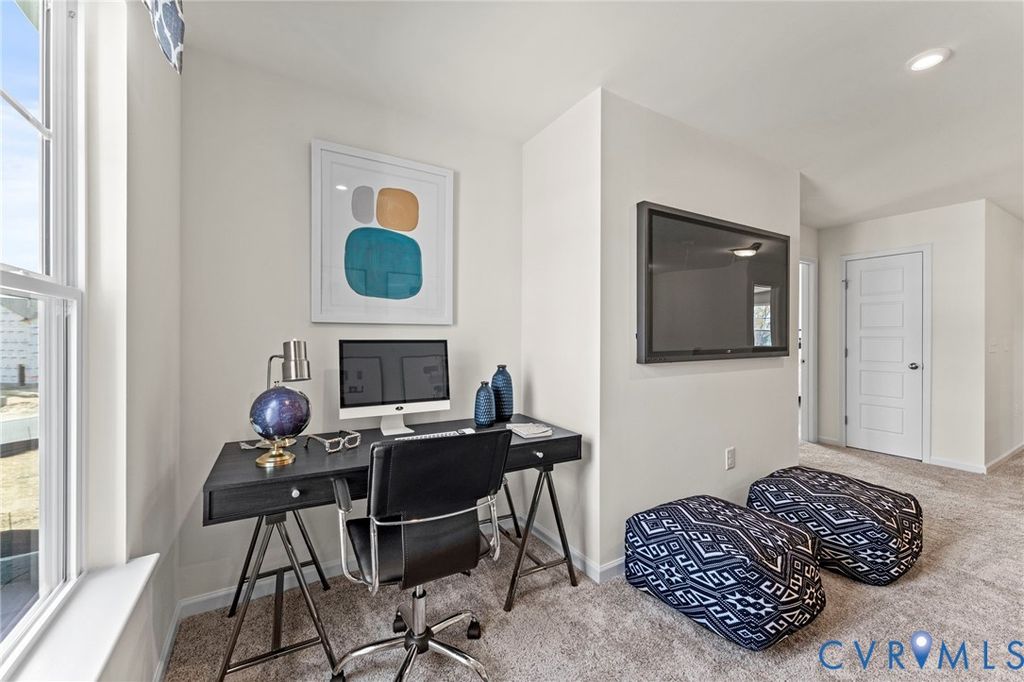 MEET THE CURIE! The Curie offers 6 BEDROOMS and 3 BATHS, including a first-floor guest suite. As you enter through the foyer, you are welcomed by a flex room that offers endless possibilities! If you love to entertain, set this space up as a formal dining room or if you're looking for a home office, add the french doors and create a private space ideal for working from home! Continuing on is the chef's kitchen with large center island, loads of counterspace and a pantry for storage. The kitchen overlooks like the dining area and family room (optional fireplace). There's a first-floor guest suite just off the living area with a walk-in closet and full bath. Upstairs, you'll find your Primary Suite with large walk-in closet and private bath with shower and double vanity! Four additional bedrooms, a full bath and laundry room complete the tour. ACT SOON - List price includes base price, suite and 5th bedroom, Purchaser may select structural and design options for an additional cost. The Curie offers the following options: fireplace in family room, morning room with loads of natural light, covered or screen porch and 3-car garage! Nestled on spacious, wooded homesites, Qualla Trace offers a tranquil setting with easy access to Hull Street Road and Iron Bridge Road for dining, shopping, and entertainment. Enjoy stress-free commutes with convenient routes to Route 1, the U.S. Defense Supply Center and 288, making it simple to navigate the Richmond metro area. (HOME IS NOT YET BUILT - Photos & visual tour are from builder's library & shown as an example only. Features & options will vary).