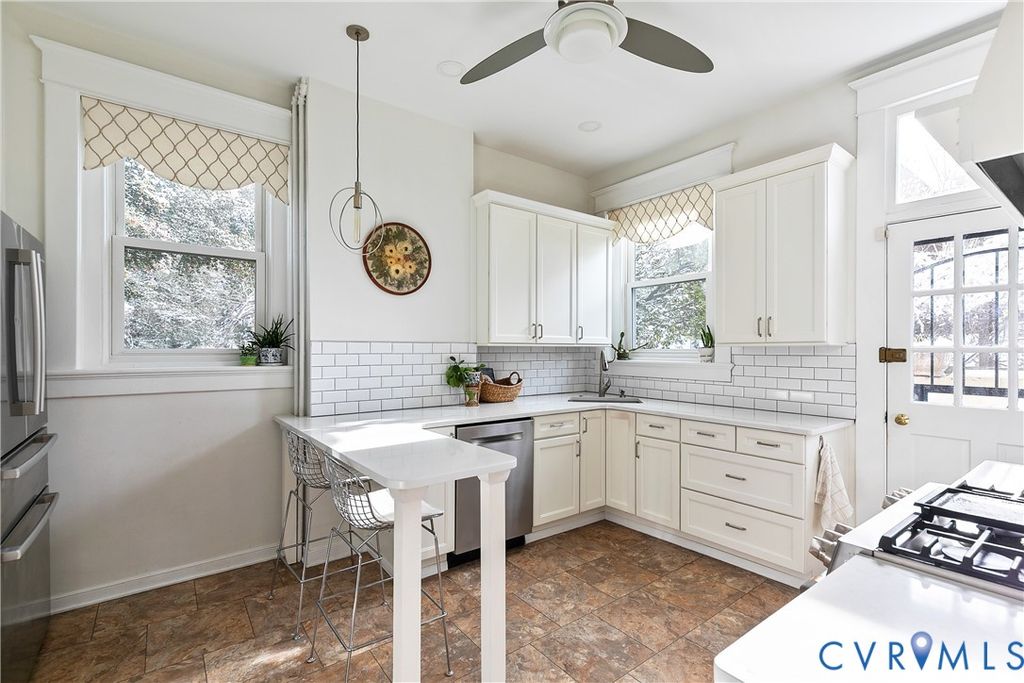 Welcome to 105 N Rowland Street "” an irresistibly charming Fan home filled with character, natural light, & thoughtful updates. This 3-bedroom home (plus a dedicated office) offers 2 full baths, picture molding, & 5 unique mantels/fireplaces. Sitting beside a quiet dead-end alley, the home enjoys wonderful privacy & sunlight pouring in from its south-facing windows. Step onto the large front porch & settle into the new swinging bench, perfect for morning coffee or watching the neighborhood stroll by. Inside, the freshly painted entryway offers excellent storage and a cozy under-the-stairs hideaway "” a kid-favorite nook or the perfect spot to reimagine. The dining room features a stunning green tile mantel surround and an original pink-and-brass light fixture, opening into a bright, cheerful living room accented by south-facing windows and classic shutters for privacy. The updated kitchen includes stainless steel appliances, quartz countertops, a peninsula with bar seating, and great storage, including a pantry area just off the hall. A renovated full bath with a tub rounds out the first floor. Upstairs, the three bedrooms continue the charm with lovely fireplace covers (each one delightfully different), great storage, and warm natural light. The second full bath features whimsical pebble-and-fish tile "” a detail easy to miss until you settle in. There's also the perfect bonus room for an office or gym upstairs. Outside, the backyard feels like a hidden retreat, surrounded by a wall & trees that make it feel worlds away from city life. A young fig tree is beginning to establish itself, & there's space to garden along the sunny side alley. The home features a special Elizabeth Van Lew plaque, adding some Richmond history. Just steps from Joe's Inn, Shield's Market, Sidewalk Café, the VMFA & other Richmond staples. This is an amazing opportunity to own a piece of The Fan, where charm, light, & character shine in every room. There's even a half basement w/ tons of extra storage!