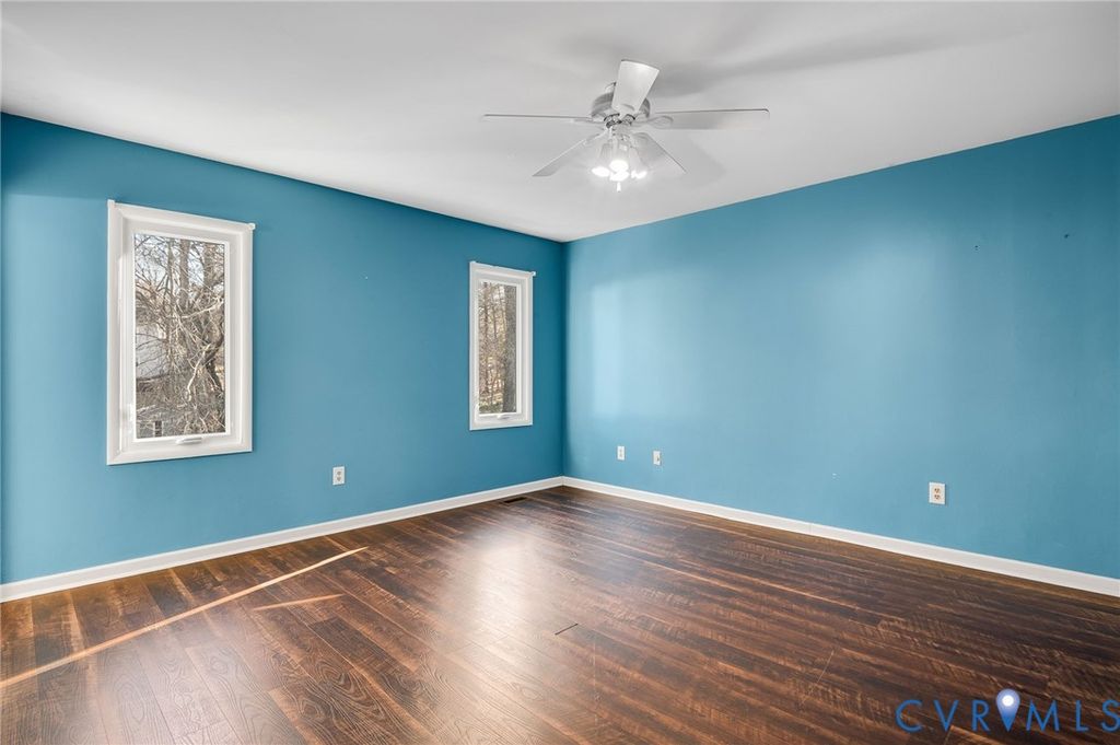 Welcome to The Woodlands located in the highly sought after Tuckahoe region of Henrico. This nearly 2,500 square foot two-story home sits on roughly a third of an acre, including 4 bedrooms (downstairs primary bedroom), 3 full baths, and 1 half bath. After entering, you will be greeted by LVP flooring spanning the majority of the home. The vaulted ceiling living room on your left leads into the dining room with access to the first-floor primary bedroom, equipped with a spacious walk-in closet and full dedicated bathroom. The updated kitchen boasts a tile floor, black matte stainless-steel appliances, pantry closet, eat-in area, and countertops replaced in 2022. The laundry room is located just off the kitchen along with the home's half bath near the cozy living room/den area. The second level is host to the remaining 3 bedrooms, one of which includes a full en-suite bathroom to operate as a second primary bedroom. A full hall bath can be found on this floor as well. The rear deck (accessible from the kitchen and downstairs primary bedroom) looks out over the large fenced in backyard, great for pets, kids to play, and entertaining guests. Additional updates and improvements to the home include the roof (2015), vinyl windows (2014), and HVAC units (2013 & 2015). Schedule your tour today and come see what this property has in store for you!