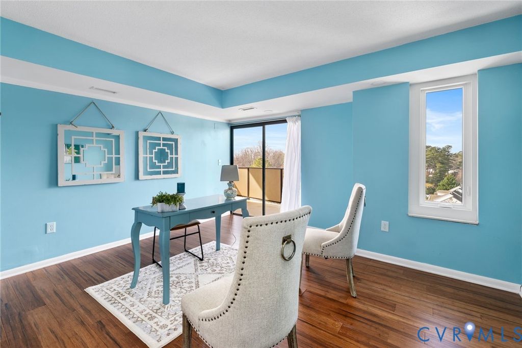Big sky views and a quiet park like setting, are just a few features of this special home in the Hathaway Towers. Once arriving home, you will be welcomed to a beautiful updated lobby/living room. It's a great place to meet your neighbors or welcome your guests. Take the elevator up to the ninth floor, where you will be impressed with easy living all on one level. This two bedroom home has 9' ceilings, and new engineered hardwood flooring, with an updated kitchen. Host your friends for dinner in the dining room and enjoy entertaining in your living room which has two sliders opening up to your private balcony. The primary suite has a private bathroom and a large walk-in closet. The second bedroom would make a great office or hobby room! Lots of things to do here, swim laps in the outdoor pool, bridge with friends in the afternoon in the Club Room, or a nice workout in the gym! Want to get out and enjoy the nearby James River parks, walk over to Restaurants and Shopping, or drive downtown to enjoy dining and shows. This could be your new home with no yard work!!! The easy life can be yours