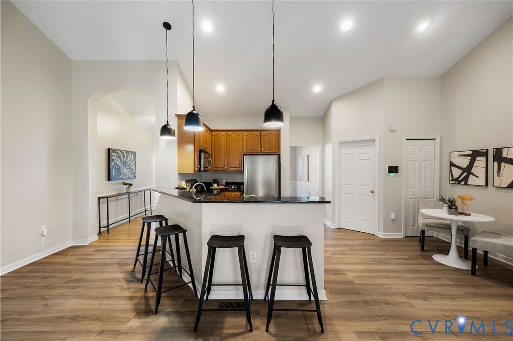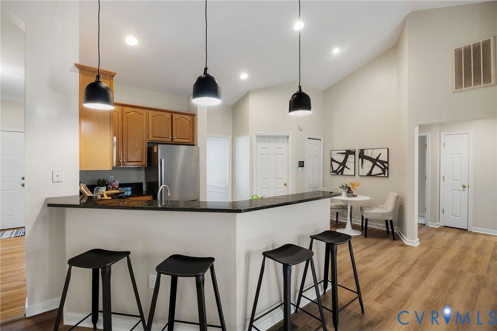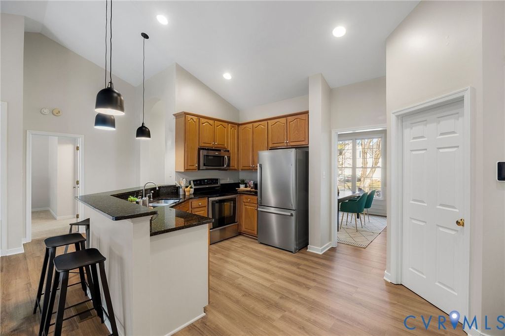 INSPIRED RANCH REVIVAL IN GLEN ALLEN! If you like ranch dressing, you'll love the just completed upscale makeover of this 3 bedroom 2 full bath Magnolia Ridge transitional ranch w/bonus room featuring new interior Benjamin Moore paint palette, all new LVP flooring, new carpet in bedrooms, new custom tile bath floors and new lighting and plumbing fixtures! Elegant wainscoted entry foyer w/hardwoods, formal dining w/tray ceiling, granite/stainless kitchen w/new lighting and new counter-depth fridge, expansive open living room with soaring vaulted ceiling, built-in bookcases flanking a gas fireplace, and handsome new "Tudor Oak" LVP flooring throughout! Leads to a screened porch overlooking a beautifully landscaped & newly fenced rear yard. Primary suite features jetted tub & separate walk-in shower, built-in heated towel rack and double vanity w/new lighting and plumbing fixtures. Bonus room/bedroom over garage makes for an ideal family room retreat that will also accommodate your most discerning guests. System updates include newer solar panels that will convey, newer water heater, heat pump and dimensional roof. A direct-entry garage w/remote overhead door, paved drive and one of Glen Allen's most convenient neighborhoods w/pool and clubhouse welcome you home!