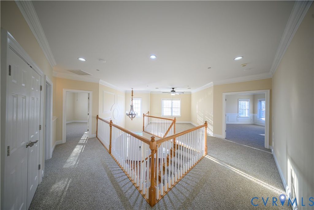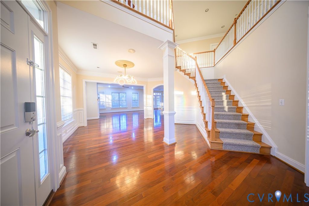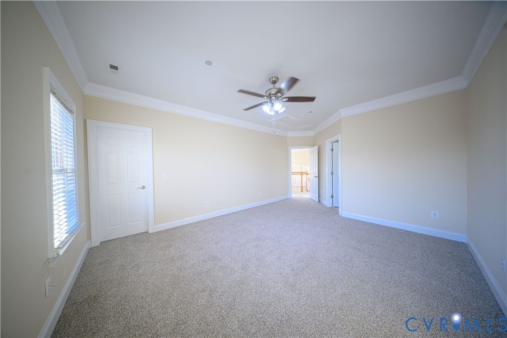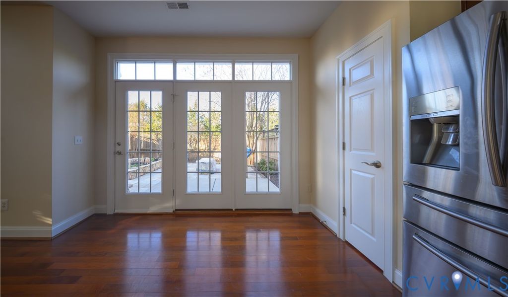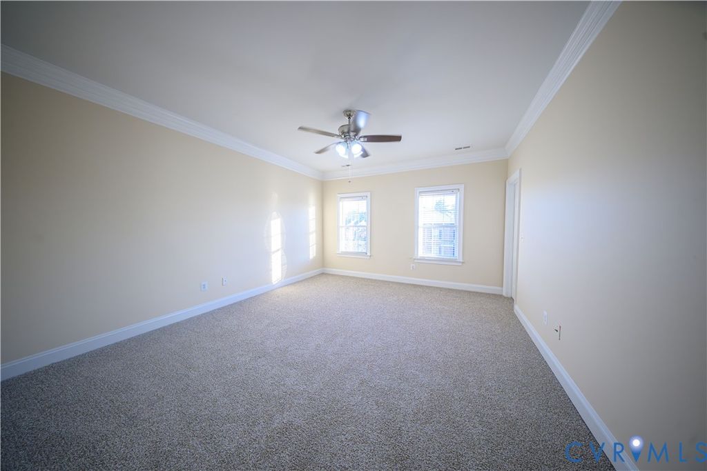 Welcome to this beautifully updated END-UNIT townhome featuring new carpet, fresh paint throughout, and newly painted cabinets, ideally located in the heart of Short Pump"”within walking distance to Short Pump Town Center, Walmart Super Center, and numerous restaurants and bars! This spacious 3-bedroom, 3.5-bath home offers an open and inviting first-floor layout highlighted by a dramatic two-story foyer with decorative moldings. The formal living and dining rooms feature 9-foot ceilings, multi-member crown molding, and chair rail with picture molding. The family room also boasts a 9-foot ceiling and a gas fireplace, creating a warm and comfortable gathering space. The large eat-in kitchen is perfect for entertaining and includes a generously sized granite island, granite countertops, ceramic tile backsplash, beautifully painted maple cabinetry, and a new stove. The second level features a versatile loft area ideal for a home office. The spacious primary suite offers a tray ceiling, a custom walk-in closet with hardwood flooring and built-in cabinetry, and a luxurious ensuite bath with dual vanities, soaking tub, and private water closet. Bedrooms two and three each include their own ensuite bathrooms and walk-in closets. A conveniently located laundry room, linen closet, and additional storage closet complete the upper level. Outdoor living is enhanced by a fenced rear yard with a stone patio, gas fire pit. Additional features include a Bose audio system throughout both levels, a security system, recessed lighting, newly grouted and caulked areas, new ceiling fans, and a two-car garage. Additional Features & Upgrades * End-unit townhome * New carpet & fresh paint throughout * Newly painted cabinets * Walk-in closets in every bedroom * Custom cabinets in primary walk-in closet * New stove * Bose sound system * High-end ceilings & recessed lighting * New ceiling fans * Newly grouted and caulked * Security system * Fenced backyard * Stone patio with gas fire pit * Fish pond / koi fountain garden