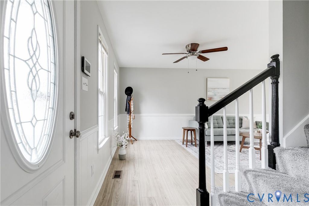 Welcome to 10215 Dakins Drive "” where comfort and style come together in this beautifully updated 3-bedroom, 2-bathroom home in North Chesterfield. Thoughtfully refreshed and move-in ready, this 2-story home offers inviting spaces designed for everyday living and effortless entertaining. Step inside to a bright, light-filled living room featuring brand-new LVP flooring (2026), dual ceiling fans (2026), and a seamless flow that makes gatherings feel natural and comfortable. The eat-in kitchen pairs timeless charm with practical design, showcasing crisp white cabinetry, a pantry, and generous storage. Just beyond, the dedicated dining room sets the stage for everything from casual weeknight dinners to holiday celebrations. A full bath with a standing shower and convenient washer/dryer hookups completes the first floor. Upstairs, the spacious primary suite offers plush new carpet (2026), a walk-in closet, and private access to the full hall bath with a shower/tub combo. Two additional bedrooms provide flexible space for guests, a home office, fitness area, or creative pursuits "” easily adapting to your lifestyle. Out back, the fully fenced, oversized yard invites you to relax, play, garden, or host summer barbecues on the gravel patio under the stars. All-new vinyl siding (2026) enhances the home's curb appeal and new interior paint (2026) adds to its fresh, updated feel. Ideally located just minutes from shopping, dining, and outdoor recreation, this home delivers the perfect balance of updates, space, and convenience. Schedule your private showing today and discover all this home has to offer!