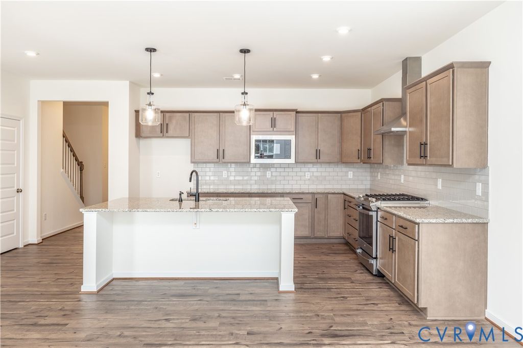 WOW"”WOW"”WOW! You are going to Fall in love with this stunning 4 bedroom, 3.5-bath luxury townhome located in the highly sought-after Palisades Cove section of Magnolia Green. Enjoy true maintenance-free living with exterior and yard maintenance included, allowing you more time to enjoy the resort-style lifestyle this premier community offers. The private backyard backs to a berm, providing exceptional privacy rarely found in townhome living. Relax on the welcoming covered front porch or entertain on the oversized covered rear patio, which opens to an additional patio overlooking the serene backyard. Inside, the first floor welcomes you with a bright foyer leading into an open-concept living and entertaining space. The gourmet kitchen features an oversized island, granite countertops, tile backsplash, gas cooking, abundant cabinetry, and recessed lighting, flowing seamlessly into the dining area and spacious family room with direct access to the covered patio. A convenient powder room and access to the one-car garage complete the main level. The second floor offers a versatile loft, a generously sized primary suite with a large walk-in closet, and a private en-suite bath featuring dual vanities and a beautifully tiled shower. Two additional spacious bedrooms with ample closet space, a full hall bath with double sinks and a tub/shower combination, and a centrally located laundry room complete this level. The third floor is truly massive and currently used as a fourth bedroom, but it also makes an ideal recreation room, media room, or guest suite. This space includes a full en-suite bath, a large walk-in closet, and peaceful views of the backyard. Magnolia Green offers luxury amenities including a championship golf course, aquatic center, tennis courts, playgrounds, and walking and jogging trails. Conveniently located within walking distance to the elementary school and top-rated schools. This home is close to shopping, dining, medical facilities & major roadways. This exceptional home is an absolute must-see.