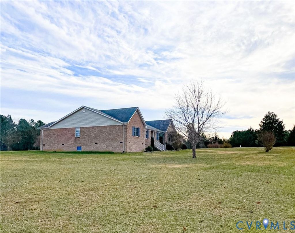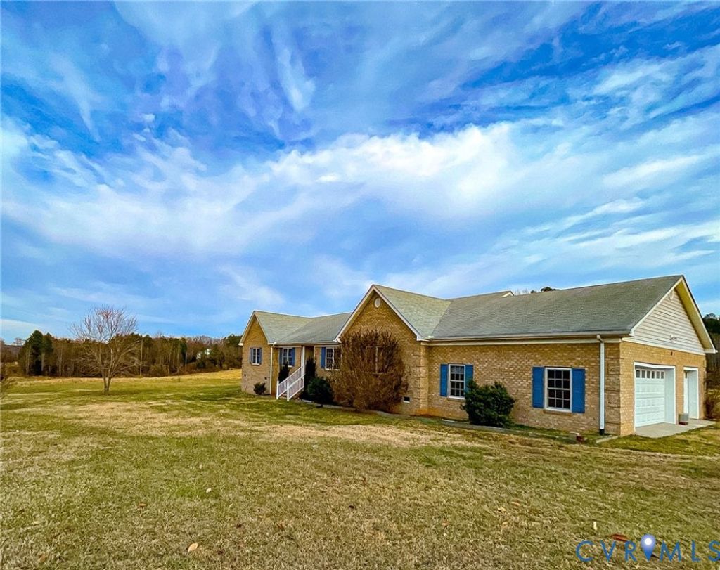 Lovely brick construction, smart layout, and room to breathe"”this well-built rancher sits on 8.6 acres with 5.5 acres of open pasture in Lunenburg County. Offering 3,230 sq ft with true single-level living, the home features a thoughtful split-bedroom layout. The private primary suite includes two closets and a full bath. On the opposite side are three additional bedrooms, including one with an en-suite bath and two connected by a Jack-and-Jill bathroom. A large central kitchen with generous counter space opens to a spacious family room/den. The home also includes formal dining, eat-in dining area overlooking the backyard, and a sunroom for comfortable year-round enjoyment. A formal sitting room overlooks the gently sloping front yard. Additional features include mixed flooring of both hardwood, carpet and tile, abundant closet space, a large laundry room with washer and dryer, a three-car garage with concrete floor, and a huge bonus room with full bath, ideal for an in-law suite, home office, or guest space. Outside storage building included. Zoned AG and serviced by a private well, conventional septic, Starlink internet, and propane whole house generator.