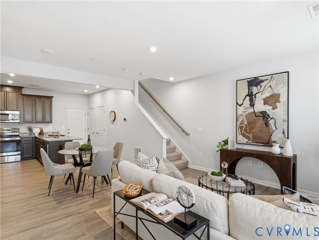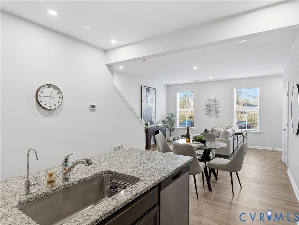 Like-new, first-floor townhome-style condo in Stanley Martin's highly sought-after Retreat at One, thoughtfully sited within the community with ample parking and peaceful, unobstructed views. This 2-bedroom + loft, 2.5-bath home with a one-car garage blends modern design with easy, low-maintenance living. Step inside to an open, airy main level designed for both everyday comfort and entertaining. Luxury vinyl plank flooring, recessed lighting, and an effortless flow connect the family room, dining area, and kitchen"”making it easy to gather with friends or enjoy a quiet night in. The kitchen anchors the space with granite countertops, stainless steel appliances, and an oversized 10' breakfast bar perfect for morning coffee, casual meals, or hosting. A convenient powder room completes the main level. Upstairs, the private living spaces offer comfort and flexibility. The spacious primary suite features two large walk-in closets and a spa-like en-suite bath with granite counters, tile floors, and a tiled shower with a built-in bench seat. A generous secondary bedroom sits just steps from a full hall bath, while the loft opens to a private balcony and serves as a versatile flex space"”ideal for a home office, workout area, media room, or guest retreat. Second-level laundry with LG washer and dryer adds everyday convenience. Enjoy low-maintenance living with HOA-managed exterior care and water included, along with a rear-load garage offering private walk-out access. A whole-house air and water filtration system is available"”contact agent for details. Retreat at One offers a true community feel with a clubhouse, fire pit and grills, sports court, dog park, and playground"”inviting you to relax, connect, and enjoy the lifestyle just outside your front door. Whether you're starting the year with fresh goals or simply ready for your next move, schedule your tour today and check "buy a home" off your New Year's resolution list.