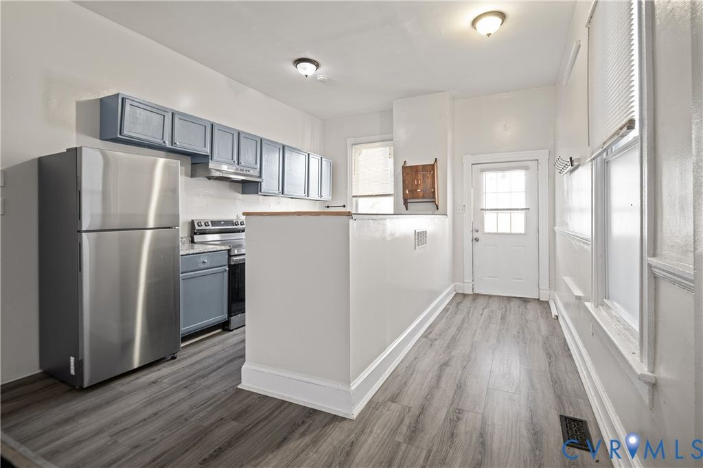 Welcome to a rare opportunity to own a duplex-style home in the heart of Richmond, offering space, flexibility, and income potential. This unique property features two distinct living spaces, each with its own private entrance, making it ideal for house hacking, multi-generational living, or additional rental income. The first level welcomes you with a covered front porch and a functional layout that includes a foyer, two bedrooms, a dedicated dining space, and a spacious rear kitchen featuring LVP flooring, stainless steel appliances, ample cabinetry, and an in-unit laundry area. Hardwood floors run throughout much of the main level, offering a solid foundation ready for personalization and future design updates. The upper level mirrors the home's generous footprint, offering two bedrooms, a flexible living space, a full kitchen, and a bathroom located at the end of the hallway for added privacy. Private balcony access completes the upper level, creating an ideal setup for a rental unit, owner's residence, or private guest space with clear separation. Outside, enjoy a fully fenced rear yard offering privacy and functionality, along with a one-car garage for additional storage or parking. The property is equipped with central air and electric heating. Located just minutes from Main Street, Union Market, local dining, neighborhood events, and ongoing development in the Church Hill area, this home places you in the center of Richmond's continued growth and revitalization. This property is livable today, customizable over time, and well-positioned for long-term appreciation. Schedule your tour today and explore the possibilities at 710 Chimborazo Blvd.