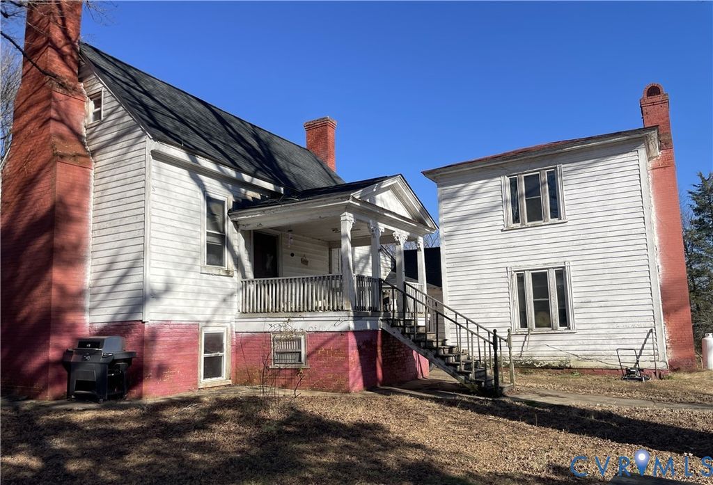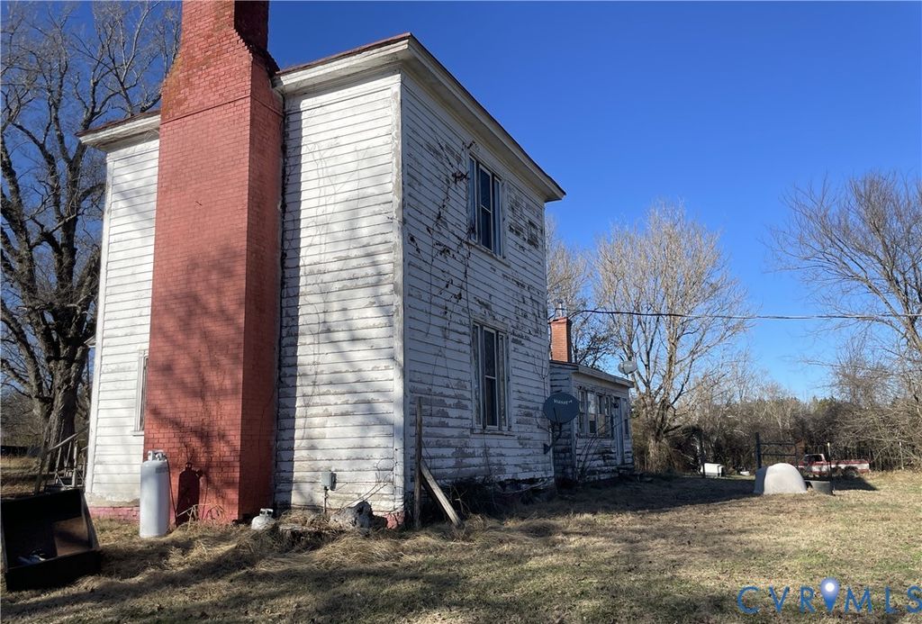 Come see this historic two-story home on 3.9 acres in Lunenburg County VA. The home was once owned by the Passmore family of Lunenburg County, with original sections of this home being built in approximately the 1850s-60s (possibly earlier). The home is estimated at approximately 2164 sq ft with 4 BR and multiple other rooms throughout. Though only one current bathroom the options are limitless for renovation and modernization to bring this notable structure back to life. There are wood stoves throughout and in the two sides/towers there are additional chimneys that could be restored. The home has baseboard heating as well in some areas. There is a new survey for this 3.9 acres. The main structure roof was replaced in 2022. The acreage comes with a fenced in paddock, small dog run or chicken coop, as a well as another small field that has been used for hay. The historic Passmore cemetery is on the front right corner of the parcel, lending to the historic feel of this property.
