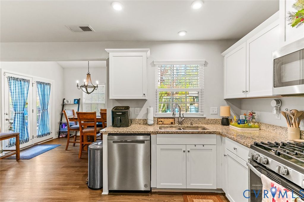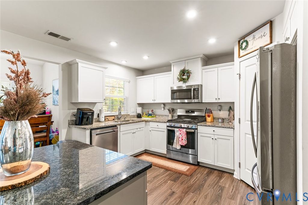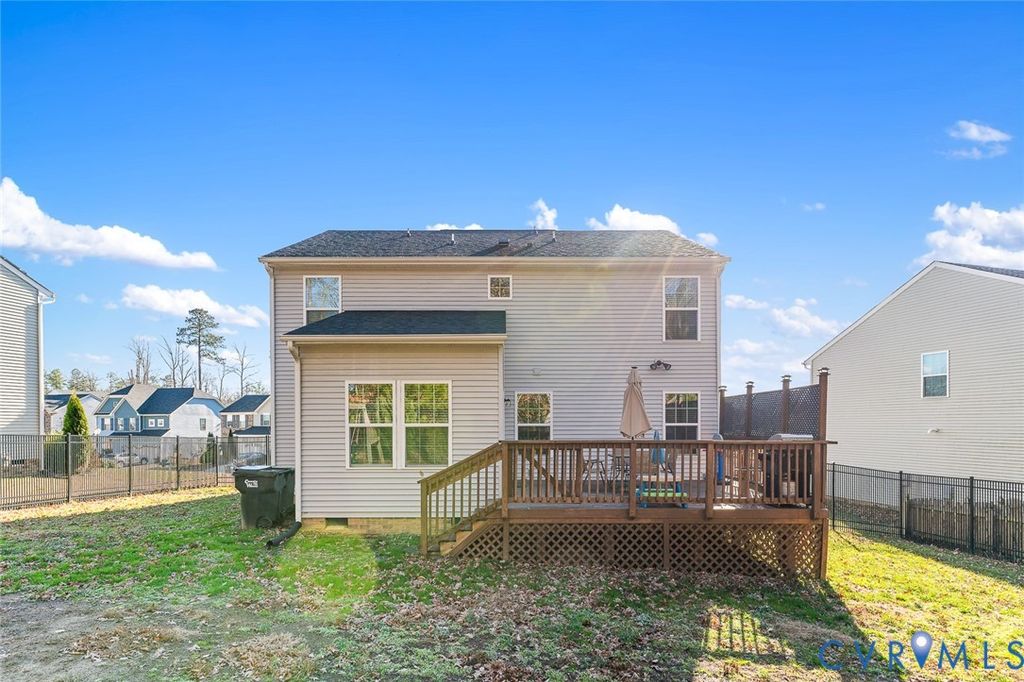 Welcome to The Arbors at New Kent Winery. This well-maintained 3-bedroom, 2.5-bath home, built in 2018, offers just over 1,800 square feet of living space. The property features a tall fenced rear yard with ample outdoor space. The kitchen is equipped with white cabinetry, stainless steel appliances, and a center island, and opens to a comfortable living area with a fireplace and modern lighting. Laminate and ceramic tile flooring are featured throughout the main living areas. All appliances convey. Swing set is included as well. Community amenities include a pool, playground, fire pits, outdoor kitchen, fitness center, and clubhouse, with access to Viniterra Golf Course and New Kent Winery. Conveniently located with easy access to I-64.