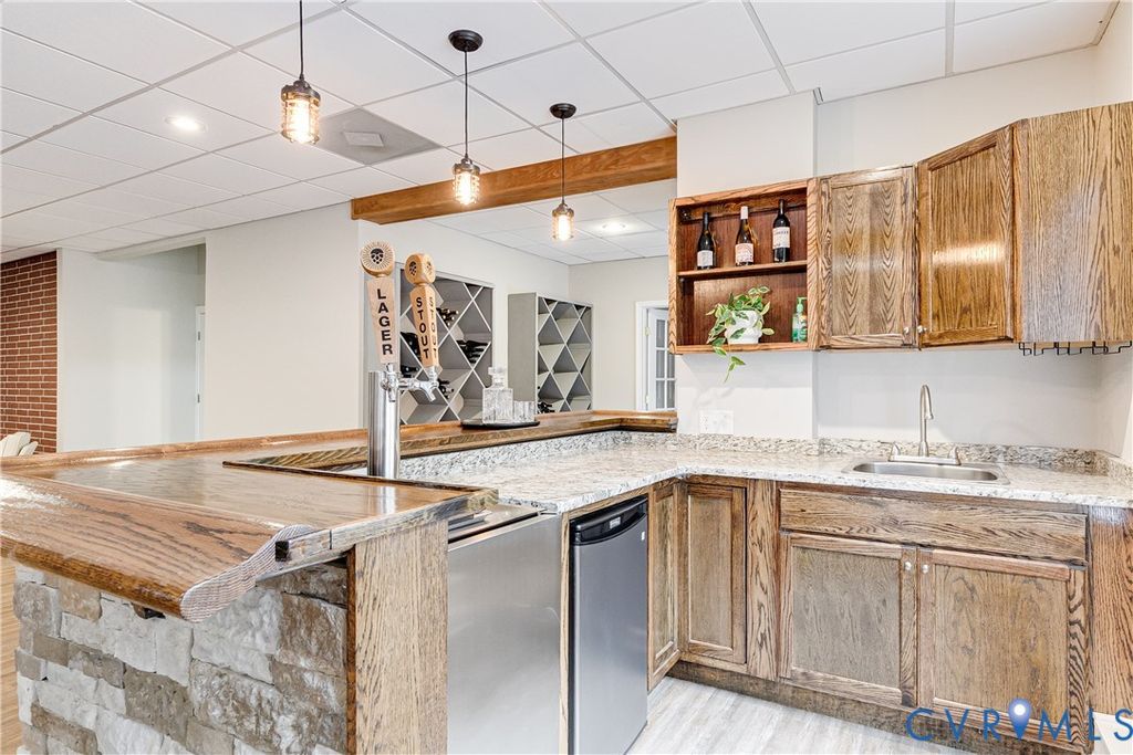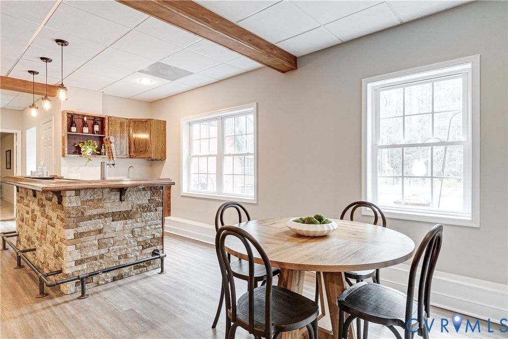 What a stunning home situated on nearly 38 private acres in Chesterfield! This property boasts over 4,200 sq ft, a fully finished basement that opens to a true poolside oasis, 4 bedrooms, 3 full baths, and so much more. You'll instantly feel at ease as you arrive at the inviting wraparound front porch. Inside, gorgeous bamboo floors flow throughout the main level. The dining area opens seamlessly to the kitchen, featuring granite countertops, stainless steel Bosch appliances, and custom cherry cabinets. Vaulted ceilings and a cozy fireplace welcome you into the living room. Just off the main living space is the primary bedroom with an en suite bath offering a tiled shower, jacuzzi tub, and double vanities. The main level also includes two additional bedrooms, another full bath, a sunroom, and a bonus room above the garage. The expansive basement is ideal for entertaining with a pool table, full wet bar and kegerator, built-in wine storage, an additional bedroom and full bath, and even a built-in safe. LVP flooring leads out to the resort-style pool and patio featuring a 14x28 fiberglass saltwater pool, perfect for outdoor gatherings. The detached 36x36 garage is currently set up as a woodworking shop, with a fully finished space above that makes for an ideal home office, studio, or man cave. The property also features updated major systems, a fully fenced yard, and an expansive driveway offering ample parking for guests, trailers, or recreational vehicles. Enjoy the perfect blend of privacy and convenience, located just 10 minutes from Lake Chesdin or Lake Margaret, all tucked away on a secluded private paradise. Book your showing today--don't miss out on this one!