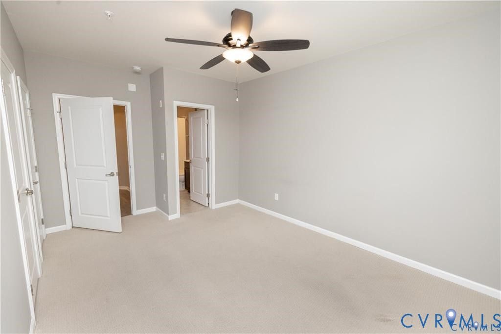 Welcome to 1111 Briars Ct Unit #303, a beautifully maintained third-floor condominium in the desirable Westwood Village at Charter Colony in Midlothian! This inviting 2-bedroom, 2-bath home offers nearly 1,500 sq ft of thoughtfully designed living space with modern finishes, an open layout & abundant natural light throughout. Ideally situated in a prime location within the community, the building offers peaceful wooded views, ample overflow parking, a less-traveled entrance, & is conveniently located across from the cluster mailbox"”providing both privacy & convenience. Step inside to a welcoming foyer with a coat closet & large walk-in storage/utility room with built-in shelving. The open great room features laminate wood flooring, 9-foot ceilings, & large windows with plantation-style shutters, creating a bright & comfortable space for relaxing or entertaining. The kitchen impresses with granite countertops, a hand-painted tile-faced island with bar seating, white cabinetry, tile backsplash, stainless steel appliances, 4-burner gas cooking, under-cabinet lighting, & a pantry for extra storage. The primary suite is a peaceful retreat with a coffered accent wall, four windows, dual closets (including a walk-in), & a well-appointed ensuite bath featuring tile flooring, a double quartz vanity, a walk-in tile shower & built-in bench, & a linen closet with shelving. The second bedroom offers cozy carpet flooring, dual closets, & access to a full hall bath with tile floors, a tub/shower combo, & modern fixtures. Additional highlights include natural gas heat (under annual service contract), a tankless water heater, in-unit laundry, & fire sprinklers throughout. Enjoy maintenance-free living with water, sewer & trash included, plus access to resort-style community amenities"”a pool, clubhouse, tennis courts, walking trails & picnic areas"”all within minutes of shopping, dining & Route 288. Experience comfort, convenience & community living at its best in Westwood Village!