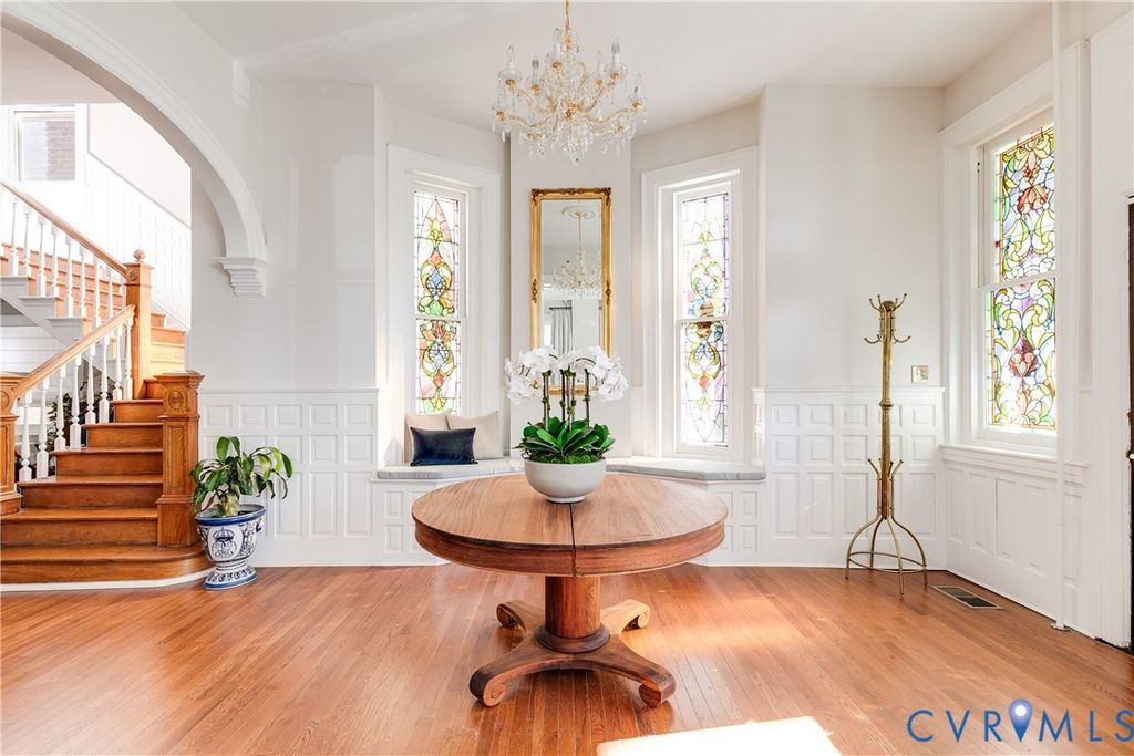 Once upon a corner lot at 2002 Princess Anne Avenue, a beautifully restored Queen Anne Victorian stands proudly overlooking Jefferson Park and the Richmond skyline. Set on a prominent corner, this exceptional residence blends historic romance with modern amenities and luxe finishes. A sweeping wraparound porch invites slow mornings and sunset conversations, while the stately hipped roof and ornate masonry create a striking first impression. Inside, timeless character abounds with gleaming hardwood floors, intricate molding, classic wainscoting, and original stained glass throughout bathing the first floor in jewel toned light. The chef's kitchen is equal parts beauty and function, featuring floor-to-ceiling custom cabinetry, premium stainless steel appliances, bespoke granite countertops, and a custom hood vent"”ideal for entertaining or cozy nights at home. The main level flows through a gracious sitting room, formal dining room, and elegant parlor, all showcasing soaring 10+ foot ceilings, custom lighting, and charming pocket doors. Upstairs, the serene primary suite offers a true retreat with a walk-in closet and a newly designed en-suite bath with tiled stand-in shower and bench, classic clawfoot tub, and double vanity. Two additional spacious bedrooms share a Jack-and-Jill bath, while two more updated full baths offer tub and shower options. A dedicated laundry room, plus access to the rear staircase and balcony, completes this level. The third floor reveals a newly renovated space with raised ceilings, a modern full bath, a children's play area, and two generous bedrooms"”ideal for guests, creative pursuits, or work-from-home flexibility. Outside, a private paved driveway, one-car detached garage, and secluded backyard patio make city living effortless. Just steps from Jefferson Park and moments from Church Hill favorites like Spotty Dog Ice Cream, Sub Rosa, The Roosevelt, 3S Yoga, Pizza Bones, Patrick Henry's Pub, Proper Pie, Alewife, and more.