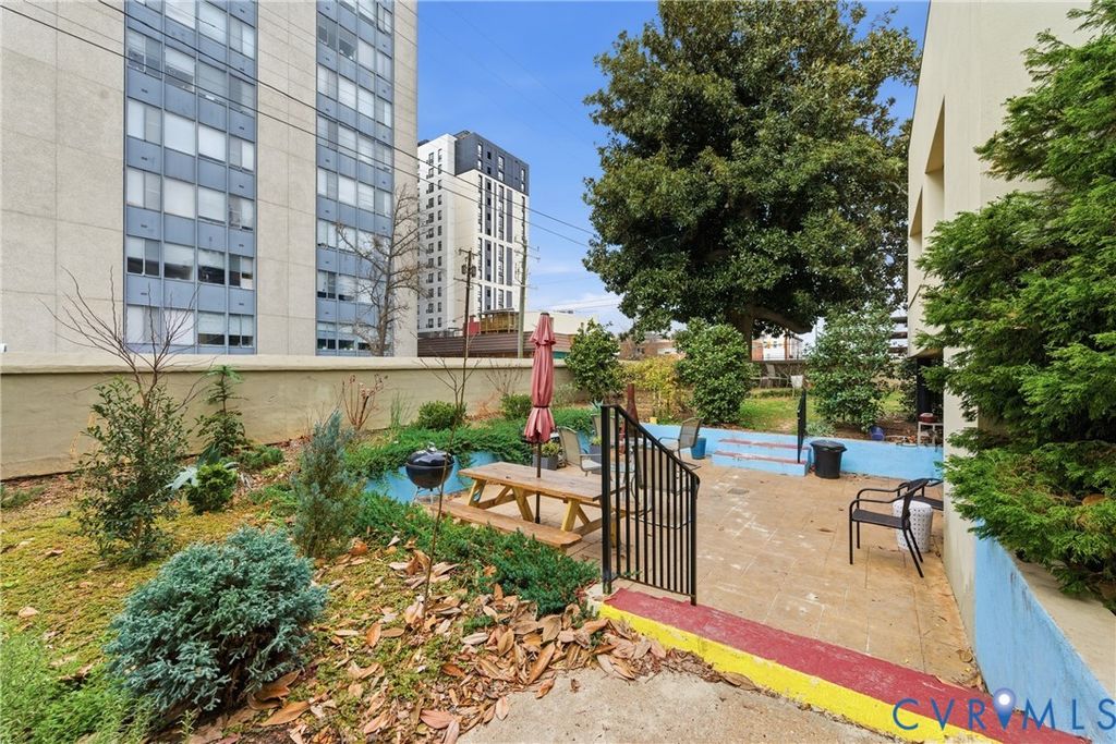 Experience classic Richmond living at Presidential Court Condominiums. Diagonally across the street from the iconic Jefferson Hotel and conveniently located near VCU, this light-filled condo offers exceptional walkability to fine dining, entertainment, and everyday conveniences. Abundant windows create a bright, welcoming atmosphere throughout. The spacious kitchen features granite countertops, stainless steel appliances, and ample storage, opening to a comfortable living area with hardwood floors and 12-foot ceilings that highlight the building's historic character. Recent updates include a new dishwasher (October 2025) and a new oven motherboard and thermometer (November 2025). A washer and dryer are located in the unit for added convenience. The private bedroom includes a full closet and an en-suite bathroom. This unit overlooks a beautifully maintained garden curated to bloom year-round, providing a peaceful green view rarely found in city living. Shared amenities include a library, recreation room, fitness center, and landscaped common areas with seating. With its prime location near VCU, this condo can be used as a rental. A rare chance to own a city condo with charm, flexibility, and an unbeatable location.
