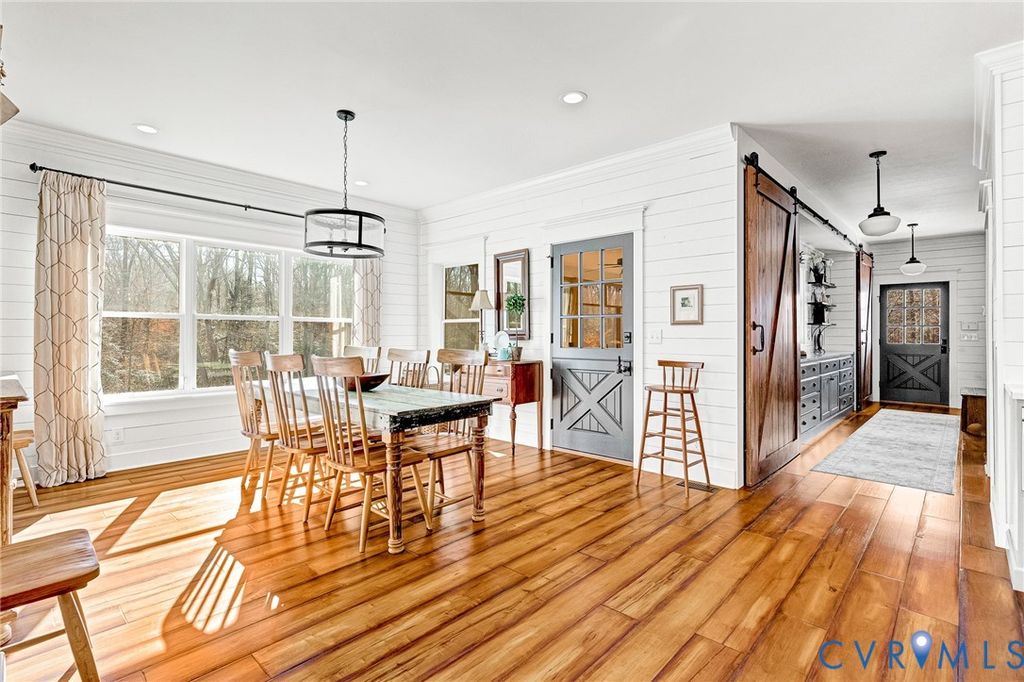 Welcome home to the simple life. Your custom built farmhouse on picturesque 10 acres in sought after Hanover High district is here. We begin our journey entering the long hallway with custom barn doors, tons of storage and natural light. The home boasts a 1st floor bedroom with full bath and large closets. The floor plan was designed with family in mind. The first floor offers a gourmet kitchen with stainless appliances and quartz countertops that flows seamlessly to the open and bright dining area as well as the huge family room with a brick wood burning fireplace. Upstairs you will find a huge 2nd floor owners suite with ensuite bath. 2 additional well appointed bedrooms and a large bonus room/future 5th bedroom or media room. The downstairs has 3 foot entry doorways for ease of accessibility.the walk up expandable attic allows for tons more storage. The entire home has solid wood doors.The exterior of the home is maintenance free with HardiPlank siding, insulated windows, 2x6 exterior walls with additional insulation. 24 gauge metal roof. Instant Hot,Propane Water Heater. The wrap around front porch and 14x 24 screened porch with "Dutch door" round things out splendidly. There is a whole house generatorThe property has a oversized 2 car detached garage with workshop. A custom built barn with North Carolina sourced rough cut pine construction with electric and water. A 4 bay pole barn to store all of your equipment and toys. Don't let the old world charm of this beautiful farm house pass you by!!