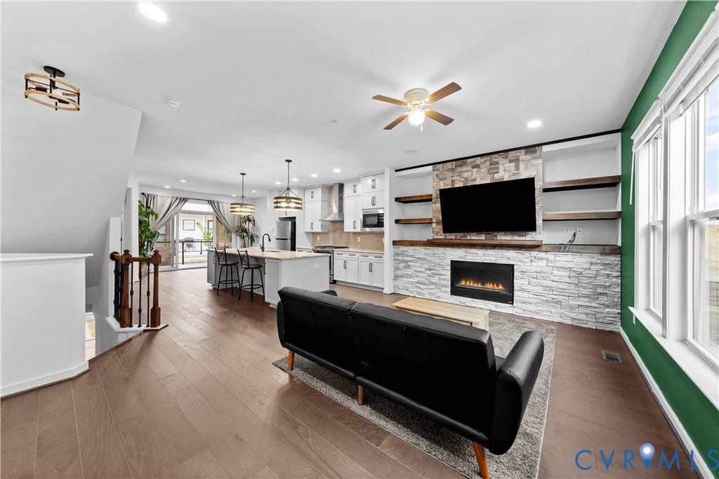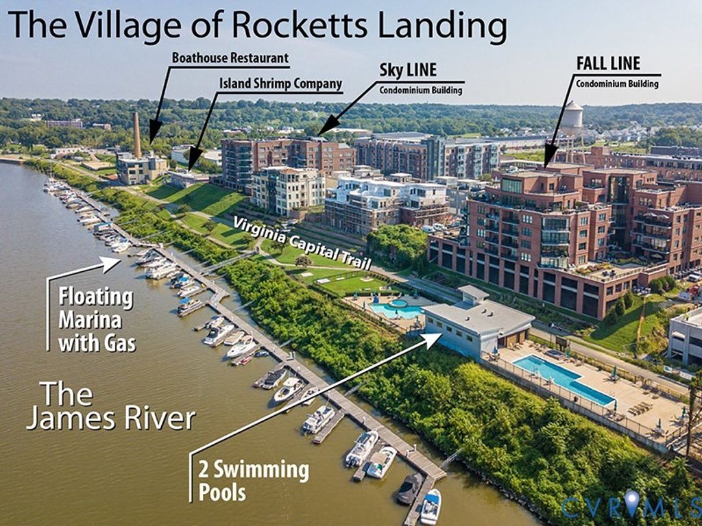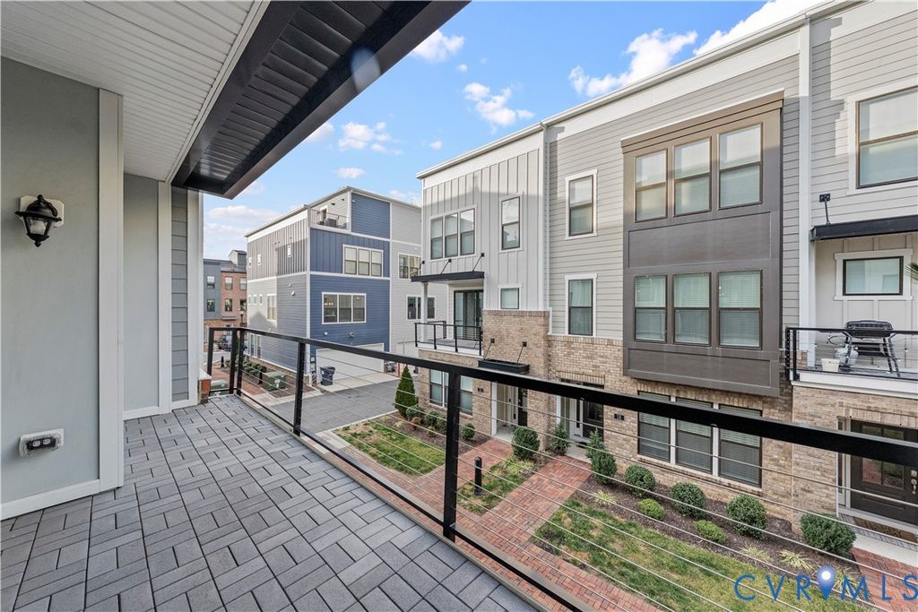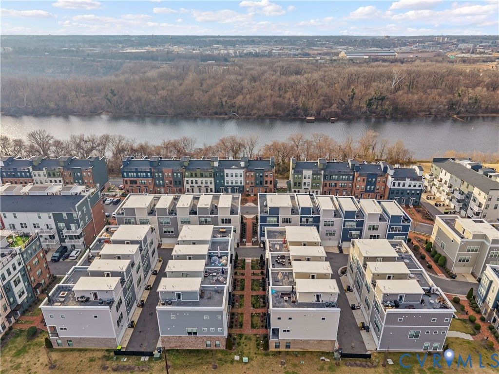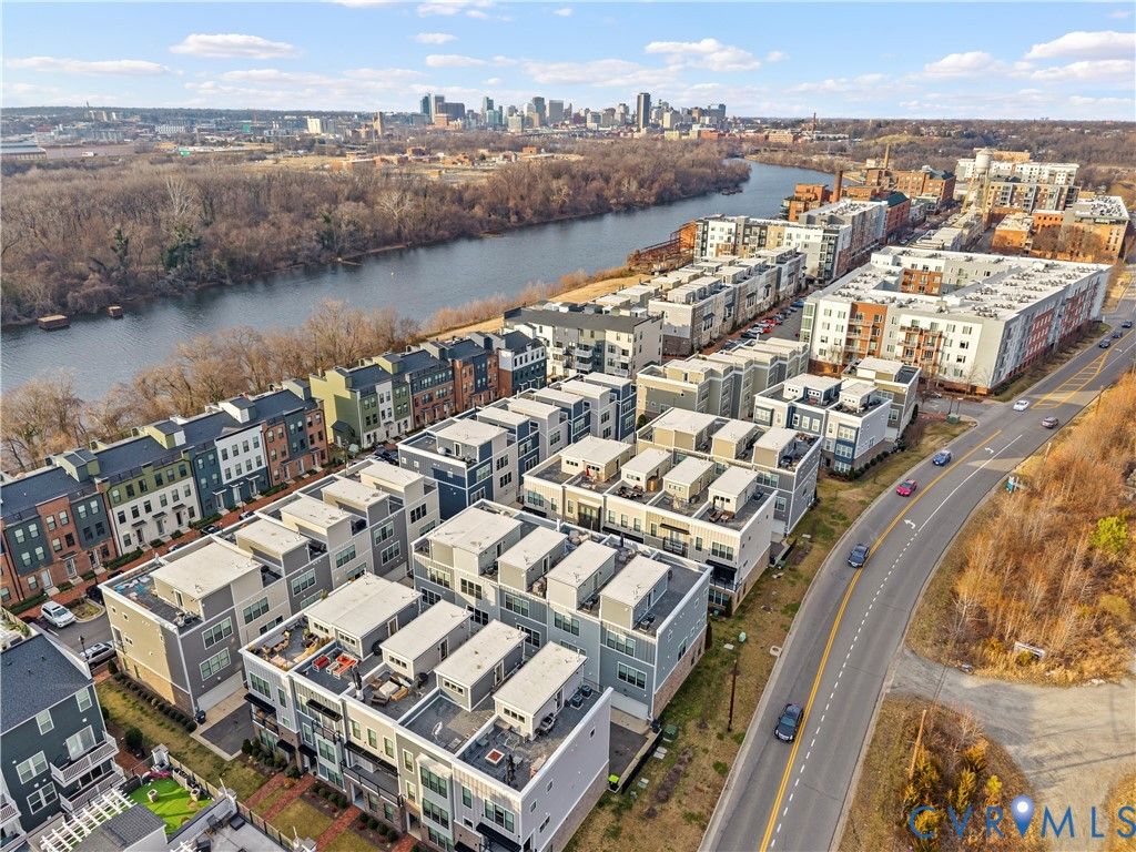 Welcome to your gorgeous new MOVE-IN READY townhome just steps from The James River and everything The Village of Rocketts Landing has to offer. This community has been carefully planned and gives you easy access to downtown and VCU while providing its own amenities including 3 restaurants, 2 community pools, 24 hr gym, The Capital Trail, marina, and a neighborhood market. 14 Shiplock Row was built in 2021, and offers 2169 sq ft of wonderfully designed living space across four levels. The first level features a lovely bedroom and a full bath. This could also be a great space for an office or den. In addition you will find the door to the 2 car garage on the first level. On the second level you'll enjoy spacious and well appointed living spaces. The kitchen is a stunner featuring quartz countertops, a large center island, stylish backsplash, and an abundance of cabinet space. The living room is anchored by a stacked stone gas fireplace and rustic shelving. Directly off the dining area, you"ll enjoy the covered balcony relaxing with your beverage of choice whether morning, noon, or night. The third level features 2 bedrooms, 2 ensuite baths, and the laundry. The Primary Bedroom, features a large walk-in closet, beautiful private bath with a double vanity and spacious shower. The Secondary Bedroom has its own en-suite bath and completes this level. One of the best features of this home is on the fourth level. This is the perfect place to host your friends and family and entertain. This level contains a half-bath, a bar area, and the large outdoor rooftop terrace! Come enjoy life on the River at Rocketts Landing in this resort lifestyle. Schedule your private showing and property tour today to join all the action!