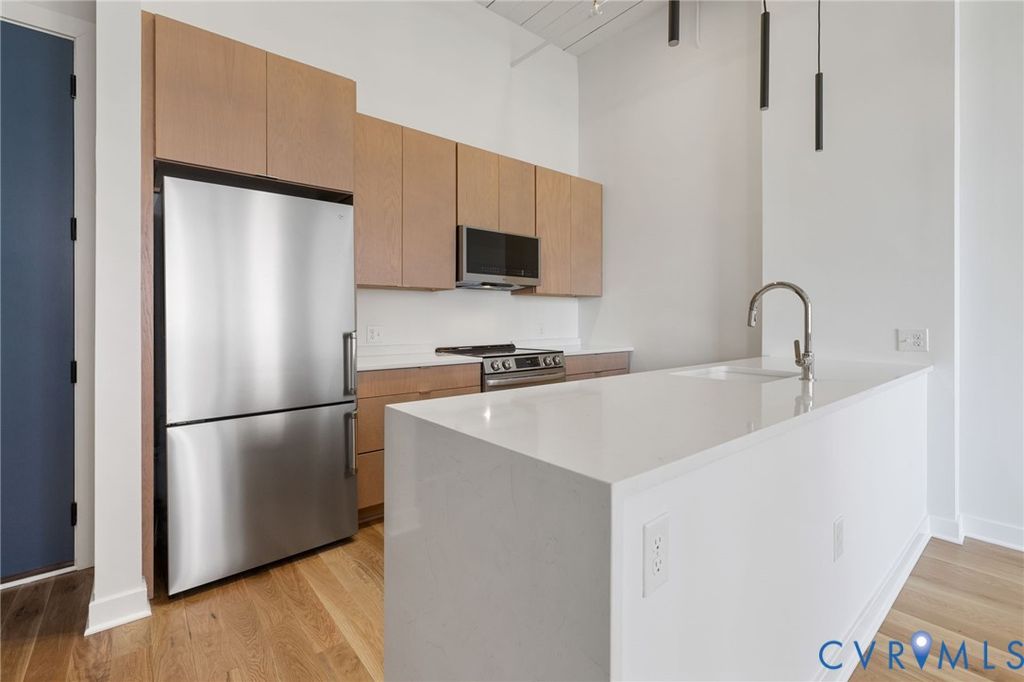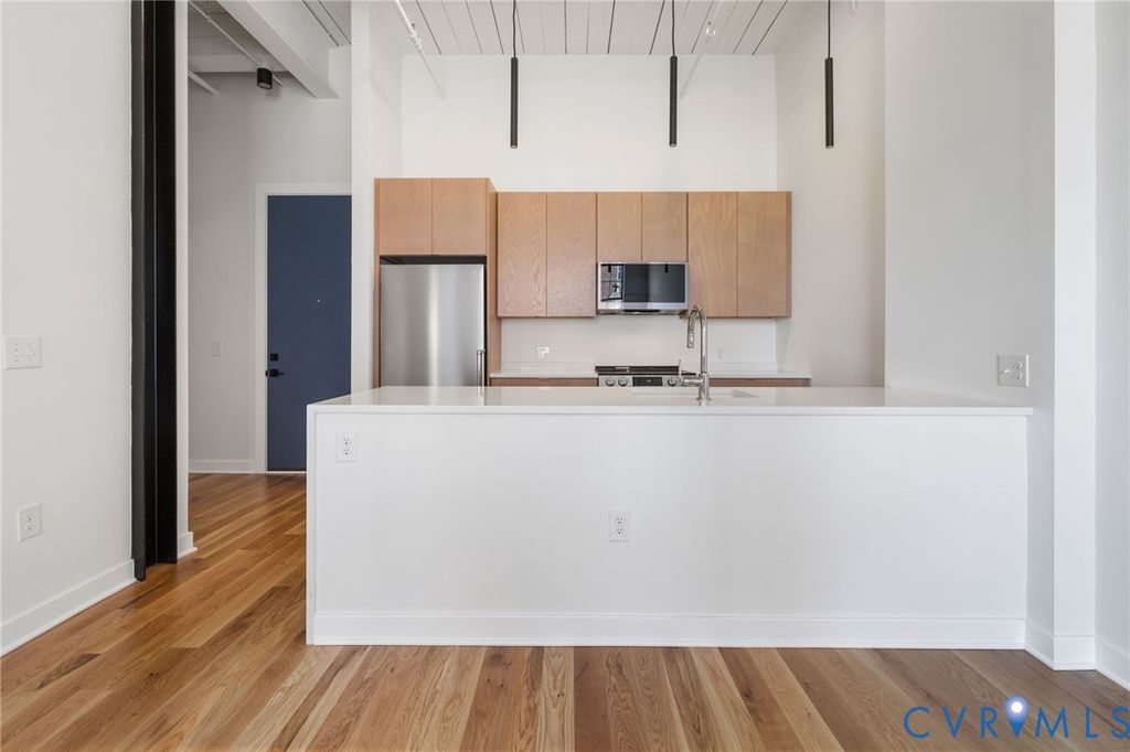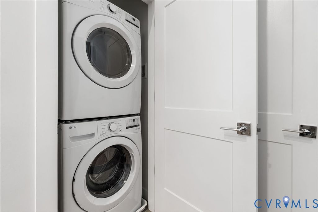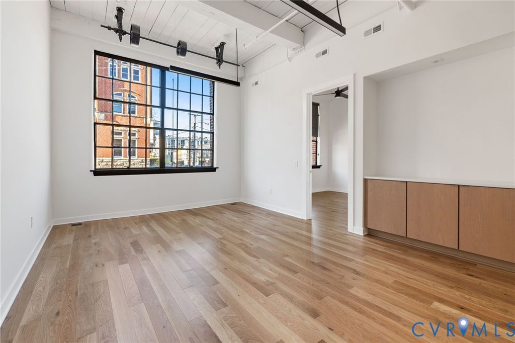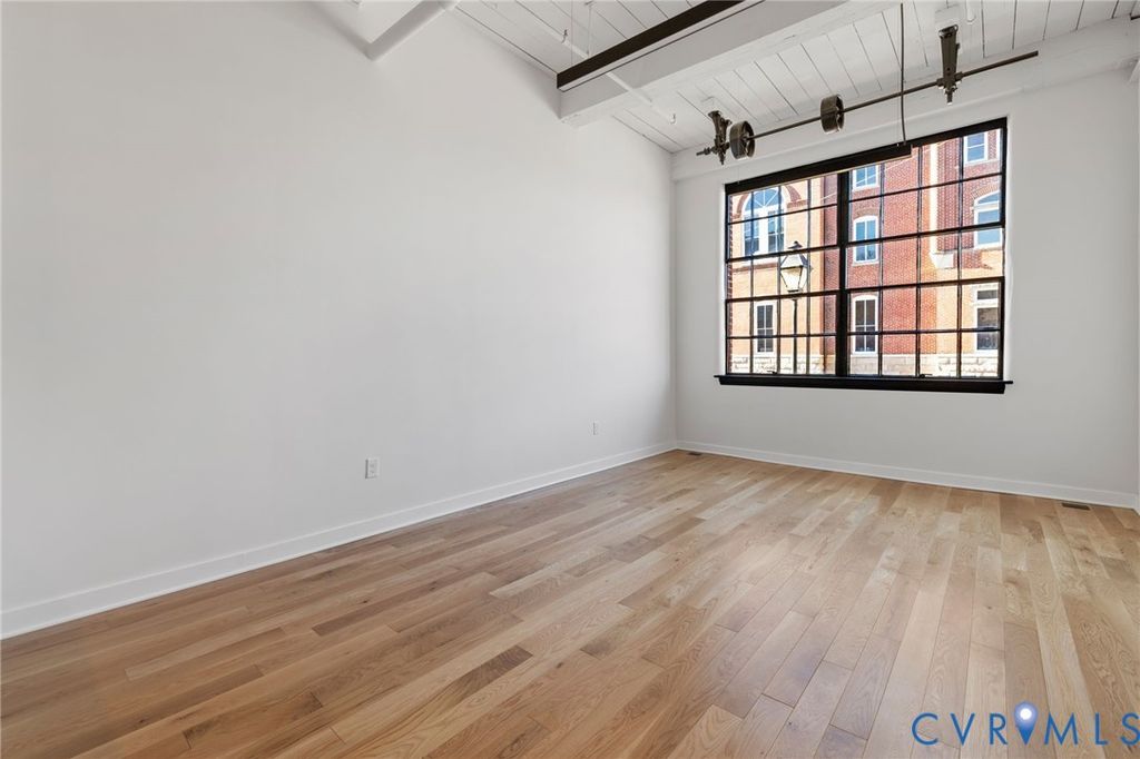 Tucked within the storied walls of the Broom Factory Condominiums, Unit 2 offers a refined take on historic living in one of Shockoe Bottom's most recognizable industrial landmarks. Originally built in 1921 for the Richmond Broom Manufacturing Company, this boutique conversion preserves the building's authentic character while delivering a thoughtfully updated residential experience. Situated on the first floor, this one-bedroom, one-bath residence offers an efficient yet gracious layout, where original architectural elements and warm white oak flooring set a timeless foundation. Steel-framed windows invite natural light throughout the space, creating an atmosphere that feels both inviting and quietly sophisticated. The kitchen and bath feature a modern palette of finishes, including quartz countertops, designer lighting, and carefully selected fixtures, complemented by a premium appliance package with a Bertazzoni refrigerator and LG appliances. A full-size washer and dryer and all-new systems add ease to everyday living, seamlessly integrated into the home's historic framework. Residents of the Broom Factory enjoy a collection of well-considered amenities, including secure covered parking, private basement storage, elevator access, bike storage, and a dedicated wash station ideal for pets or outdoor gear. A shared rooftop deck provides elevated views of the James River and Richmond skyline. With riverfront trails, parks, and Shockoe Bottom's vibrant dining and cultural destinations just outside your door, Unit 2 presents a distinctive way to live within one of Richmond's most storied buildings.