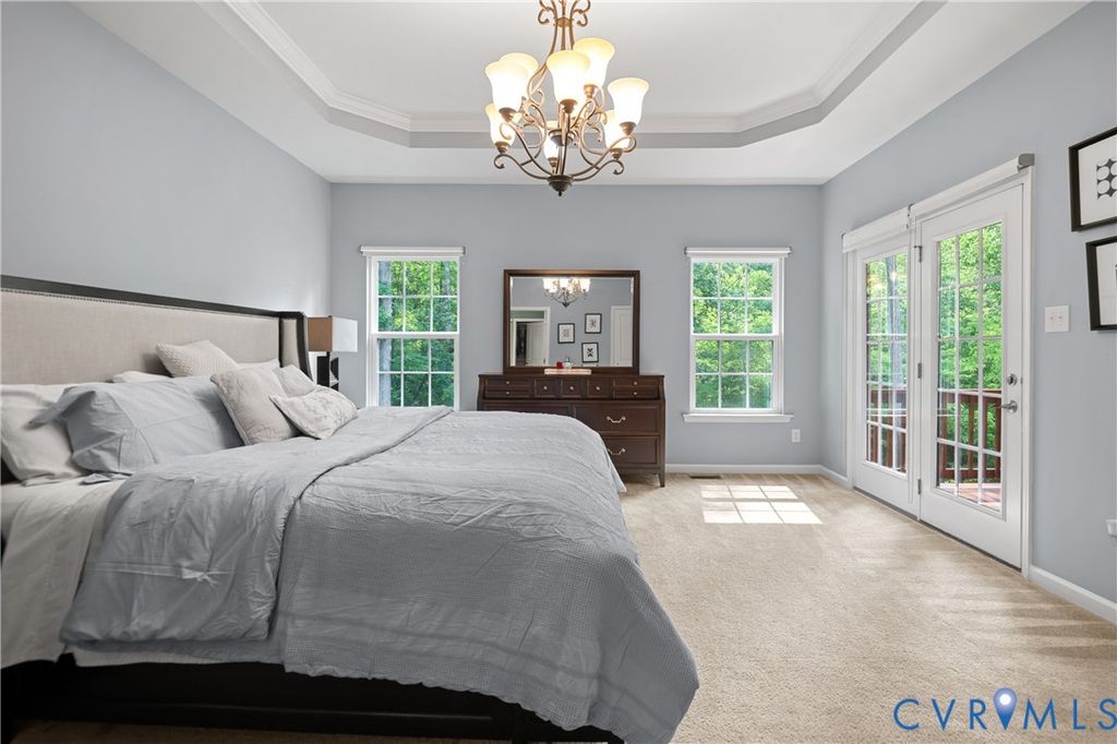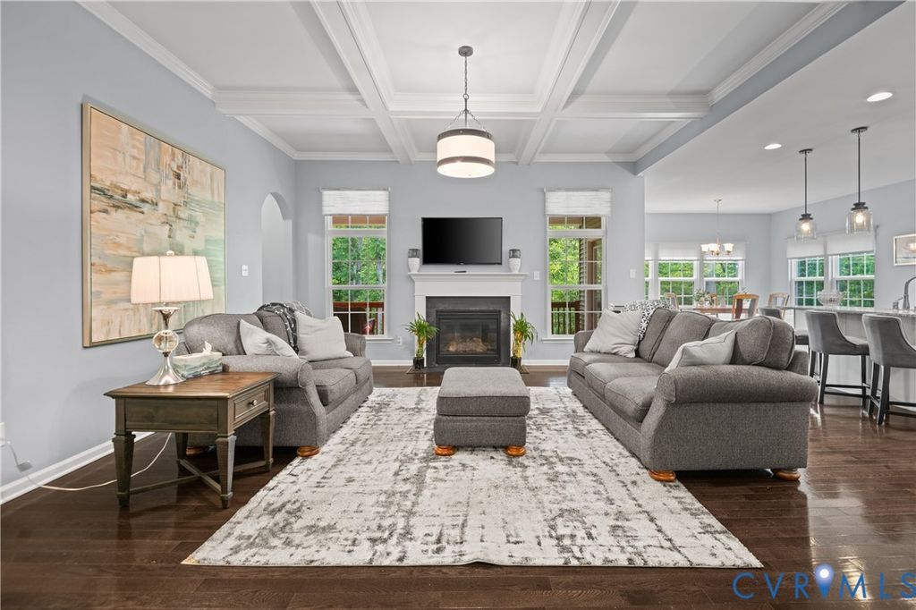 Why wait to build when you can move right in to this gorgeous home in the heart of Midlothian? This well cared for home features 3 beds, 3 full baths and a walkout basement. Enter into a gorgeous foyer with stunning hardwood floors. A sunny office is ideal for remote work. The living room features coffered ceilings, gorgeous hardwood floors, loads of natural light and is open to the chef's kitchen. The kitchen features a large island, stainless appliances and a large dining room. The first floor Primary Suite easily accommodates oversized furniture and features a tray ceiling, walk-in closet, double vanity, walk-in shower and a side porch which is ideal for your morning coffee. The walkout basement features a large media room, den, and playroom. You could finish off additional space for even more living space. The lush yard is situated next to a protected area that will not be built upon. Additional features include an oversized garage, gas fireplace, gas cooking, and all appliances convey. You will love the easy access to shops, dining, restaurants and all that Midlothian has to offer.