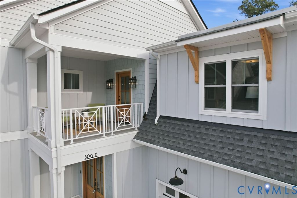 Located in Richmond's Near West End, The Enclave at Westview is a new boutique community of just seven architecturally distinct homes. The Enclave is truly a hidden gem nestled at the end of cul-de-sac with direct access to Patterson, Granite and Libbie Aves via sidewalk or dedicated path. The Enclave's hallmark is comfort and convenience! Each home is carefully crafted with high-quality materials, specifically chosen to deliver stress free, limited-maintenance living in a pedestrian-friendly location surrounded by top shopping, dining, and recreation. At 506 ½ Westview, New England charm meets modern luxury. Inspired by Shingle Style architecture of the Eastern seaboard, the exterior showcases a gambrel roof, Chippendale railings, board-and-batten siding, a two-story porch, and architecturally distinct windows. Inside, 3,422 sq. ft. of living space offers a thoughtful layout across two levels. The first floor includes a private guest suite with full bath, a study able to accommodate a future elevator, and an open floor plan perfect for entertaining. The chef's kitchen boasts a 48-inch commercial-style gas range, oversized eat-in island, custom cabinetry, quartz countertops, and a large walk-in pantry. A dual-sided see-through fireplace connects the dining area and family room, creating a warm focal point. The Primary Suite offers access to a private covered balcony, spa inspired bath with freestanding tub, dual vanities, and a triple-head glass shower, plus a grand walk-in closet with window bench and custom storage. An adjacent flex space allows for exercise, hobbies, or closet expansion. Two additional bedrooms with walk-in closets share a full bath. A spacious loft with custom built-ins and abundant natural light provides a versatile retreat. Additional features include a two-car attached garage, side patio, privacy fenced green space and a spacious laundry room. Blending timeless design with modern amenities, 506 ½ Westview delivers exceptional style and convenience.