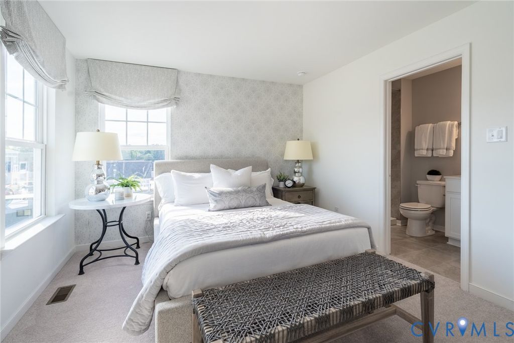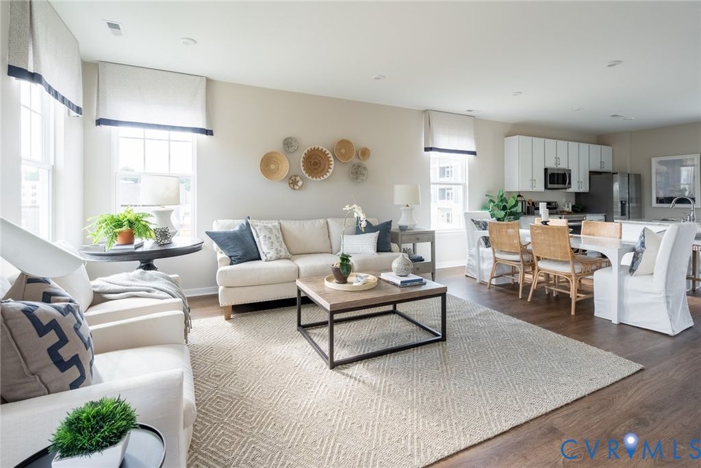 LIMITED AVAILIBILITY! The Reserve at Springdale Park is located in Henrico and offers 3-story townhomes with garages plus resort-style amenities: outdoor pool, clubhouse, fitness center, dog park, and pet grooming station"”all with low-maintenance living to free up your time! Meet The Kenmore is a 3-bedroom, 2.5-bath townhome with an open floor plan and 2-car garage. The main level features a kitchen with upgraded granite countertops, white cabinets, stainless steel appliances, oversized island and pantry, plus a café opening to the back patio and a spacious family room with vinyl flooring throughout. Upstairs, enjoy the private owner's suite with a large walk-in closet and en-suite bath, two additional bedrooms, and laundry room. There is an entry-level rec room to complete this home! Styled with the on-trend Fitzhugh Design Package, this home is ready for you! Photos are not of actual home. *ALL APPLIANCES INCLUDED. Creative down payment assistance and loan programs available.