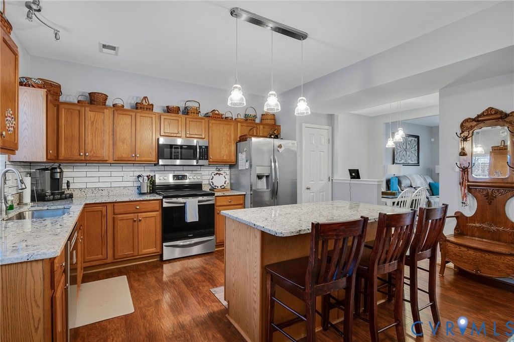 Check out the price improvement on this well maintained and updated Townhome. Welcome home to 3846 Dominion Townes circle. This beautiful Townhome offers several upgrades including top of the line granite countertops, stainless steel appliances in the kitchen. The flooring has been redone with awesome water resistant LPV flooring on the first floor. The bathrooms have new cabinets and sinks. The interior of the home has been recently painted. The exterior has a wonderful brick front and has an incredible stain glass storm door. The large primary bedroom has a large walk-in closet. The updated primary bathroom is one to admire. The large back yard with patio is perfect for entertaining. This backyard also has a great shed for all your gardening tools. This home is also convenient and extremely close to 295, downtown Richmond and a few minutes from White Oak mall. It is also just a short drive to Short Pump. Location, Location, Location. All appliances convey including a washer and dryer. Even though there are no known defects all appliances and shed convey as is. If you are looking for a great townhome with a great location and great price this one is a must see.