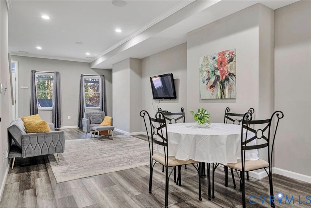 A unique opportunity in the vibrant Historic Jackson Ward community! This beautifully renovated home offers an open-concept floor plan and thoughtful design throughout, including two primary suites, each with walk-in closets and private full baths. This "Smart" home is equipped with a surround sound and security system. An excellent opportunity for investors"”ideal for VCU students, traveling nurses, or anyone seeking modern comfort in a prime location. The main level features 9' ceilings, abundant natural light, LED recessed lighting, fresh paint, LVP flooring, and a convenient half bath. The gorgeous entertainer's kitchen includes white cabinetry, granite countertops, a breakfast bar, stainless steel appliances (all convey), and a wine chiller. Upstairs, you'll find two spacious en-suite bedrooms, each offering walk-in closets, stylish bathrooms with walk-in showers, and ceiling fans for added comfort. Additional highlights include: Privacy-fenced rear yard, Covered front porch, Quiet 3-home cul-de-sac with no through traffic, Newer HVAC, Vinyl siding & replacement windows, 30-year dimensional roof. Located in a area with ongoing redevelopment, this home blends historic charm with modern convenience"”ready for its next owner.